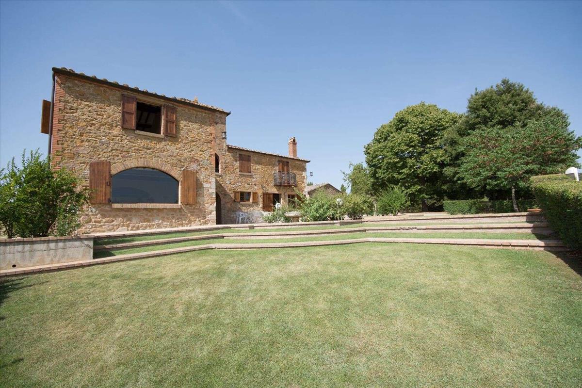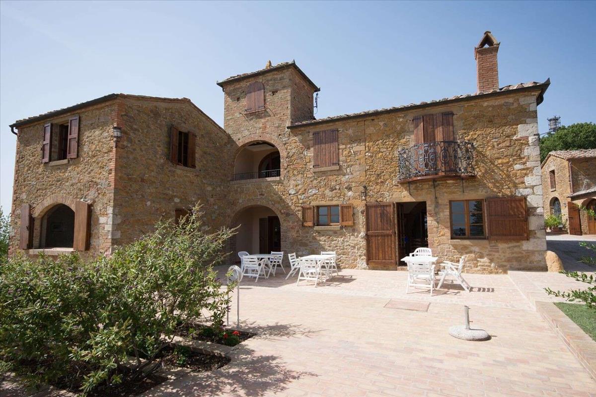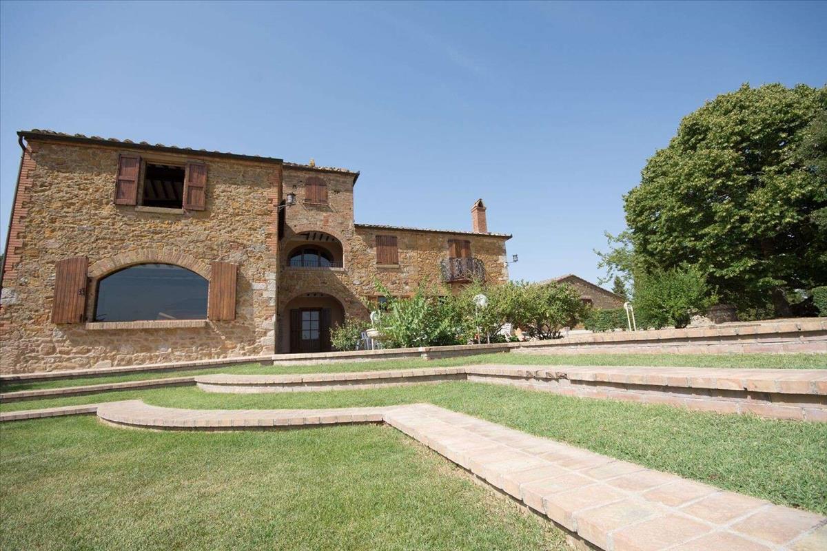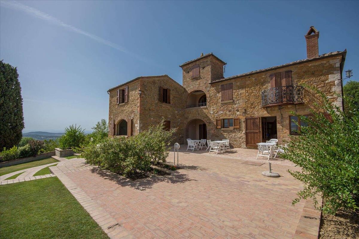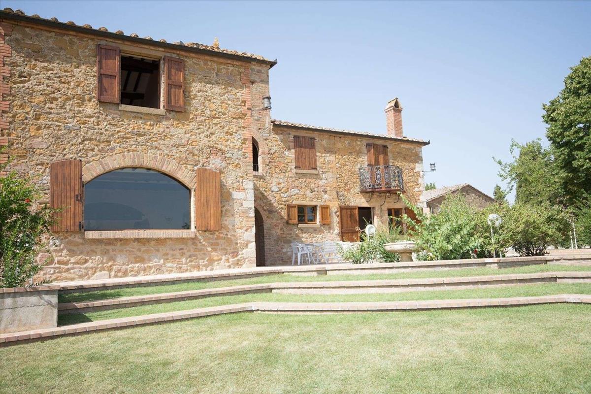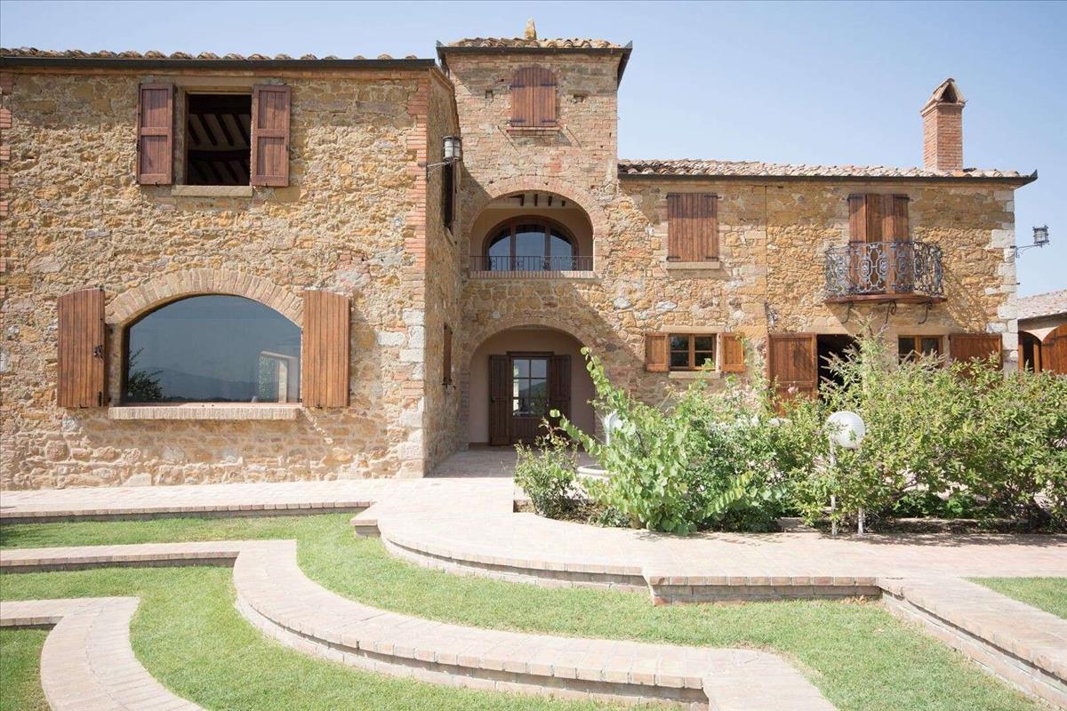 Századi kőház, két vendégház, kert medencével, mezőgazdasági mellékletek és telek eladó közel Pienza és Montepulciano. A Val d'Orcia és a Valdichiana közötti dombvidéken, Sienától délre, Pienza és Montepulciano között, a 3. utcán található.A 8 hektár magánterület Casale Montecchi, egy korábbi kétemeletes parasztház, amely 2017-ben teljesen felújított, megőrzi a természetes kőhomlokzatait, loggiáit, boltíveit és tetőtornyait, és egy bájos rusztikus toszkán stílusú vidéki lakóhellyel rendelkezik, ahol hagyományos kandallók, fagerendák és fenséges téglaívek vannak. Az első emeleten egy nagy hálószoba erkélyhez vezető hozzáférést biztosít, van egy teljesen berendezett fürdőszoba márvány dupla mosdóval, káddal és zuhanyzóval, egy gardróbszoba, három további hálószoba és két fürdőszoba.