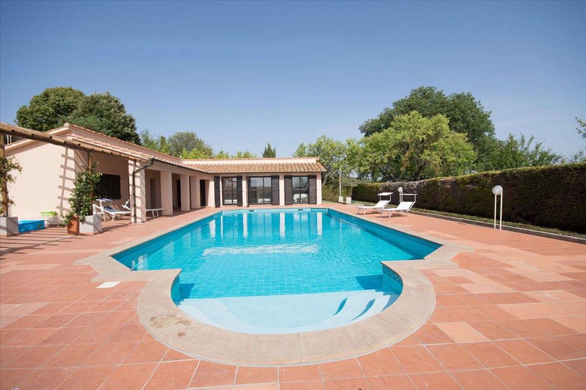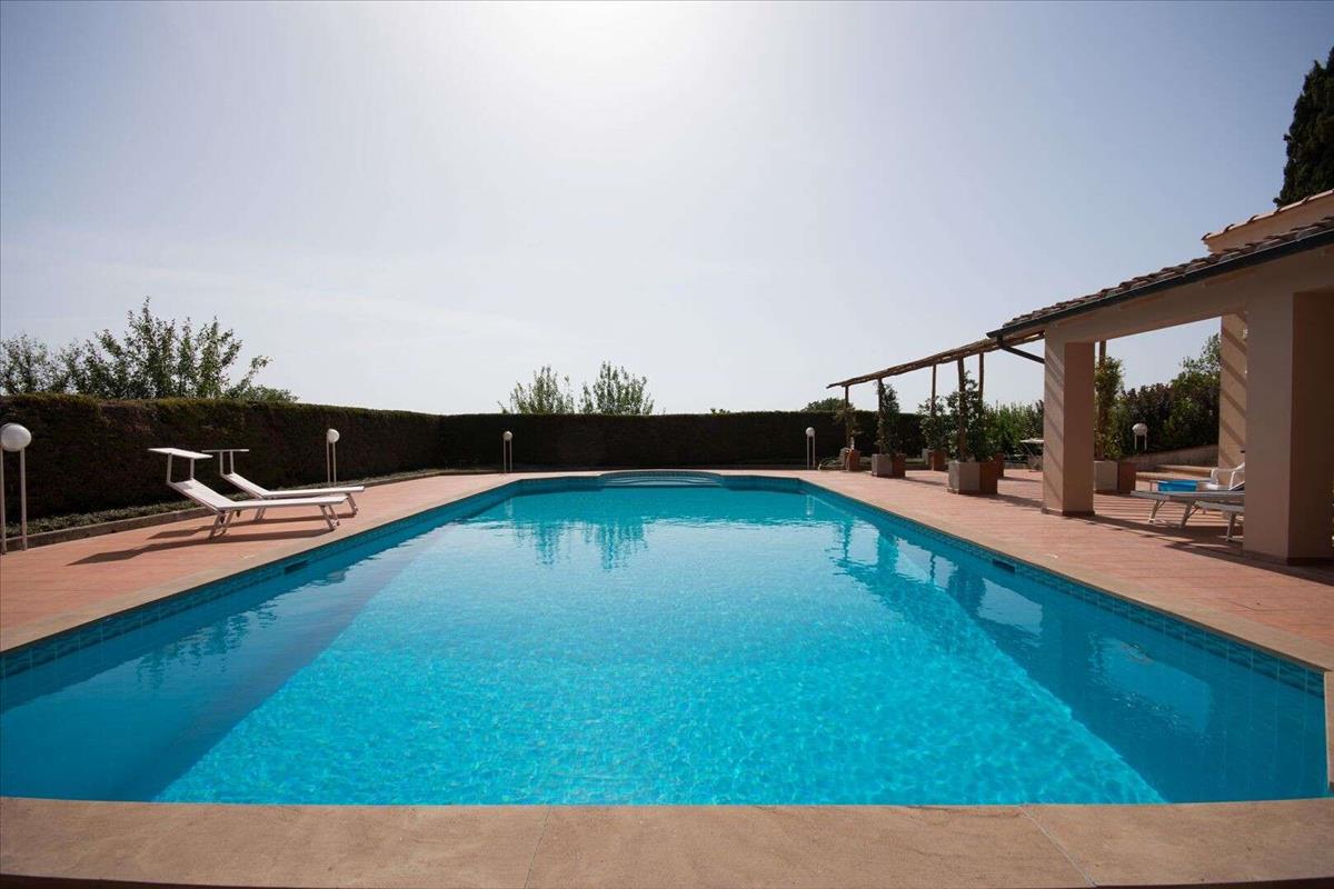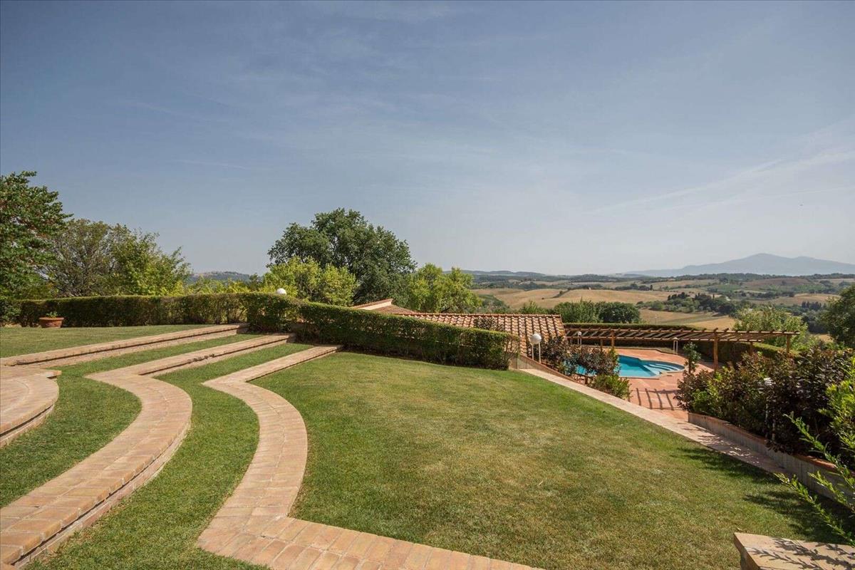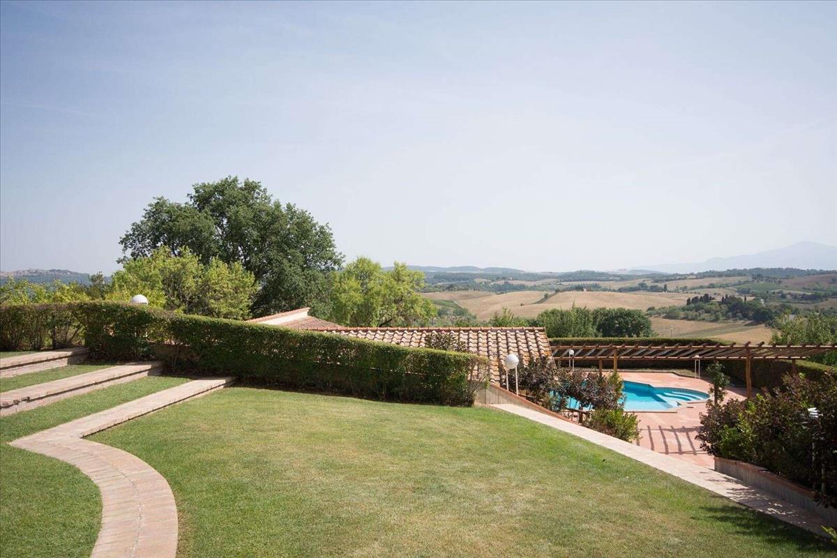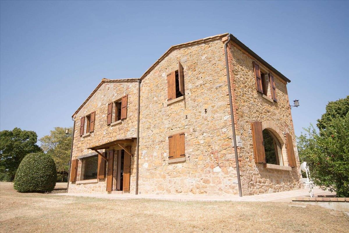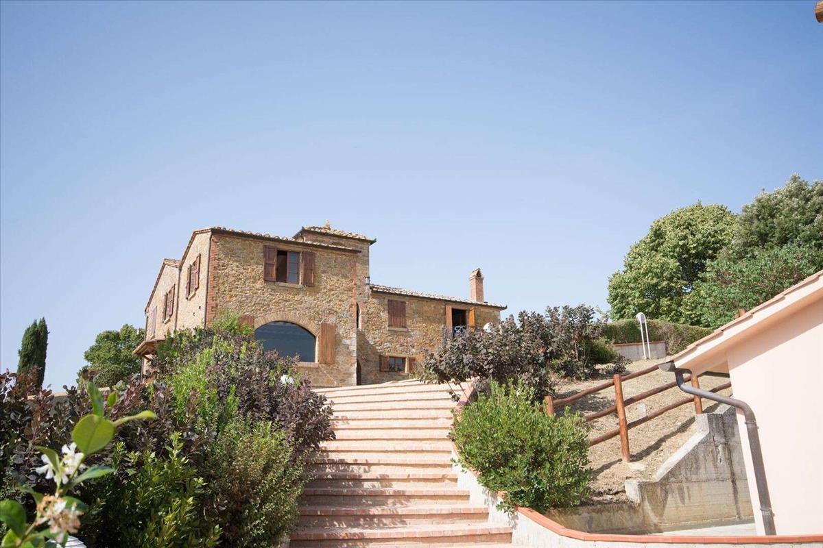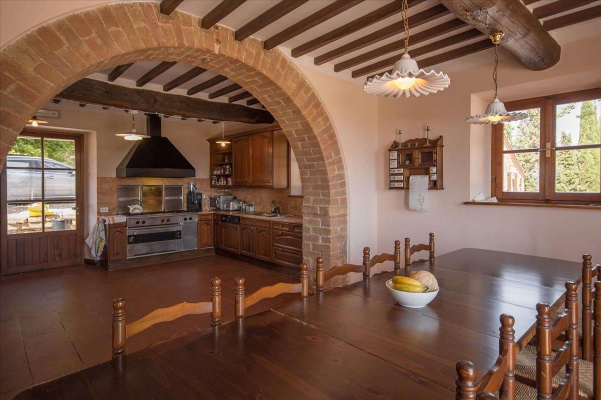 Századi kőház, két vendégház, kert medencével, mezőgazdasági mellékletek és telek eladó közel Pienza és Montepulciano. A Val d'Orcia és a Valdichiana közötti dombvidéken, Sienától délre, Pienza és Montepulciano között, a 3. utcán található.A 8 hektár magánterület Casale Montecchi, egy korábbi kétemeletes parasztház, amely 2017-ben teljesen felújított, megőrzi a természetes kőhomlokzatait, loggiáit, boltíveit és tetőtornyait, és egy bájos rusztikus toszkán stílusú vidéki lakóhellyel rendelkezik, ahol hagyományos kandallók, fagerendák és fenséges téglaívek vannak. Az első emeleten egy nagy hálószoba erkélyhez vezető hozzáférést biztosít, van egy teljesen berendezett fürdőszoba márvány dupla mosdóval, káddal és zuhanyzóval, egy gardróbszoba, három további hálószoba és két fürdőszoba.