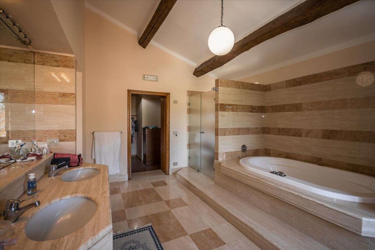 Minden ablak duplán üvegű, klasszikus fa keretekkel, minden szoba természetes fényt kap, és a nagy ablakok a kertre és a környező dombokra nyújtanak nyitott panorámát. A két vendégház a klasszikus rusztikus stílusban készült, az egyik a medence mellett, két hálószobával, széles nyílásokkal és kandallókkal. A kert téglateraszokkal és gyepes területekkel lett megtervezve, a medencéhez vezető lépcsőkkel. Egy pajta/garázs több mint 100 m², a második mezőgazdasági melléklet tárolására, valamint egy olajfaültetvény. Casale Montecchi egy elbűvölő birtok, csendes és privát környezetben, mégis közel a nagy művészeti központokhoz és a kényelmi szolgáltatásokhoz.