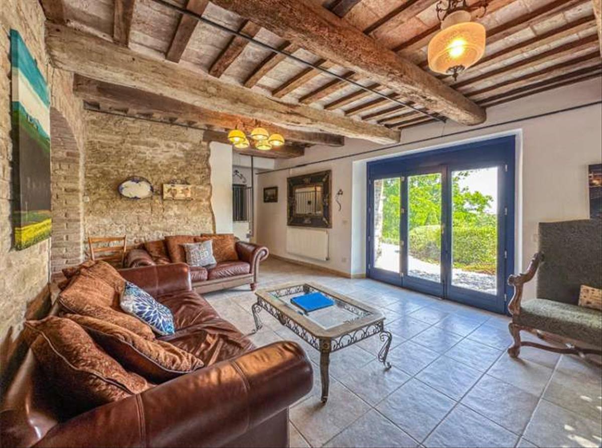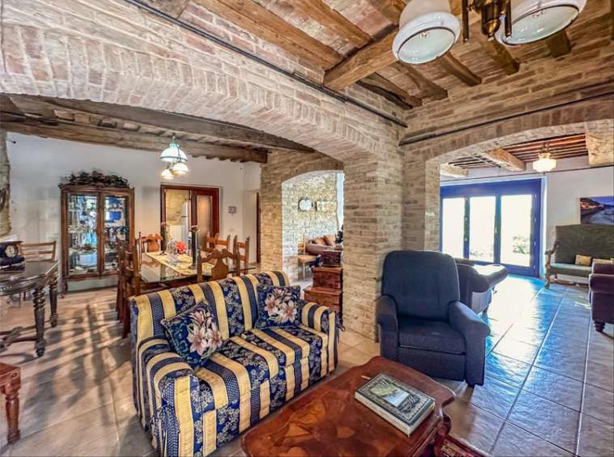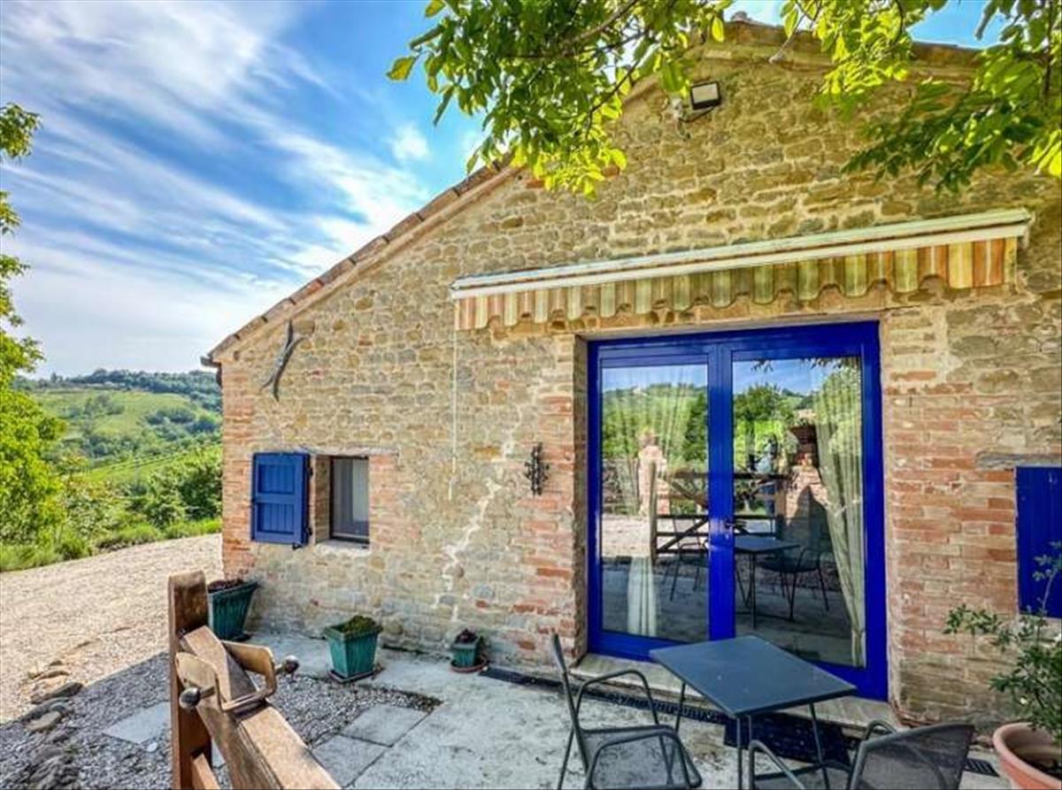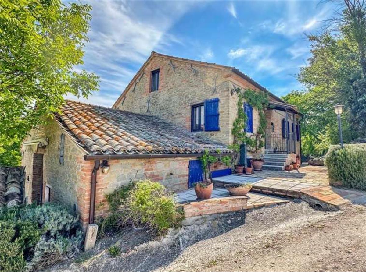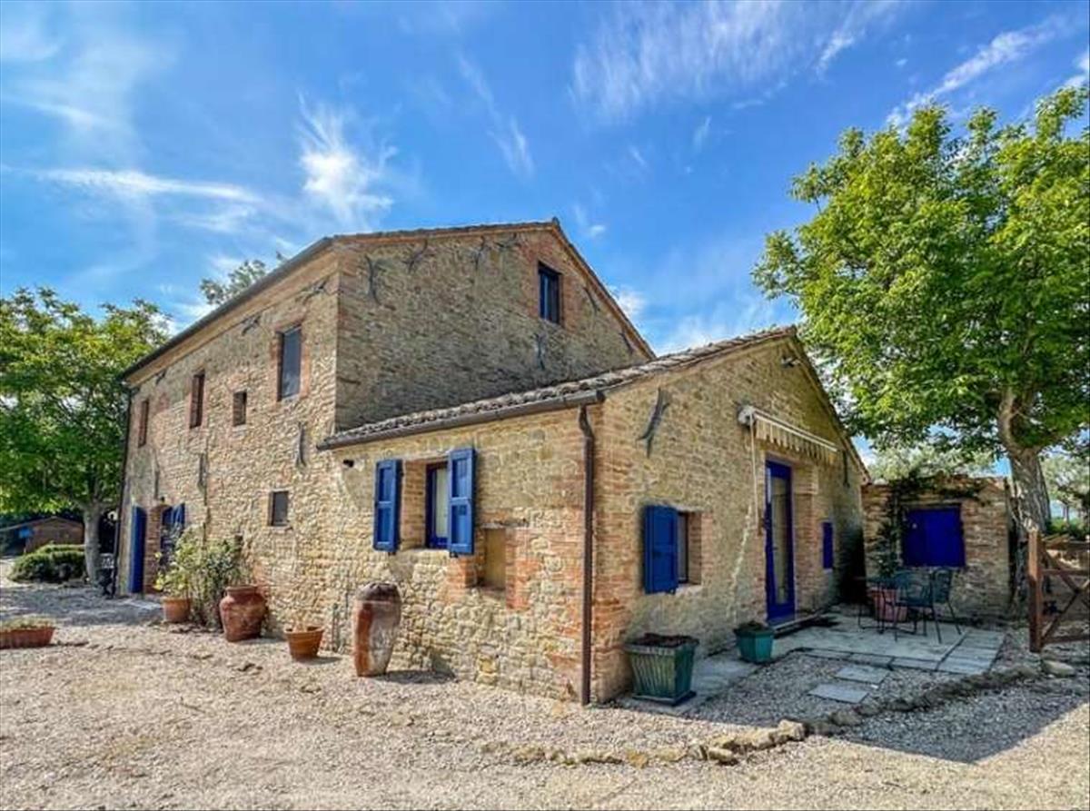 Egy csodálatos panorámás helyzetben, nyílt és romlatlan kilátással Marche vidékére, egy régi kőfarm teljesen felújítva, medencével, melléklettel, kerttel és panorámás terasszal. A 17. század végi kőfarmot alaposan és megfontoltan felújították mind belül, mind kívül. Hozzáférés egyszerű és kényelmes, a ház és a kert pedig rendkívül kényelmesek, és úgy tervezték, hogy teljesen élvezd a kilátást.A ház háromemeletes, belső magassági eltérésekkel, teljes területe 225 m2. Földszint: A bejárat közvetlenül a nappaliba nyílik; itt található egy kétágyas nappali, étkező, konyha spájzzal és egy vendégfürdőszoba. Ezen az emeleten, külső és belső bejárattal, van egy nagy szoba, amelyet földszinti hálószobaként lehet használni.