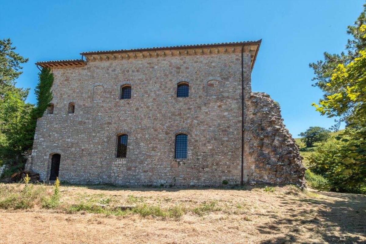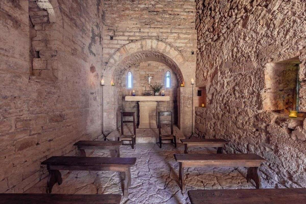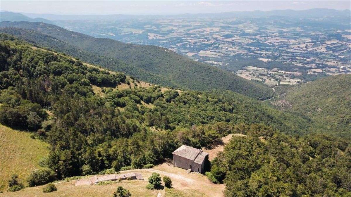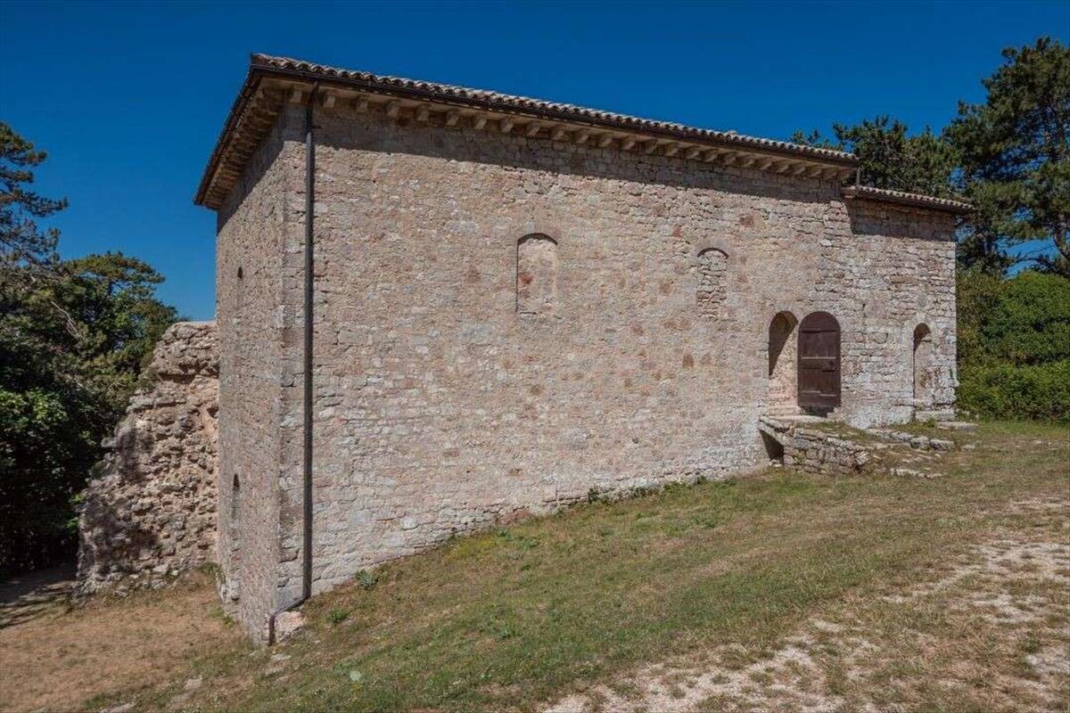 A lenyűgöző domináns kilátásokkal bíró középkori egykori apátság szentelt templomával, vendégházzal, 221 hektár / 546 hektár telekkel eladó Spoleto közelében.