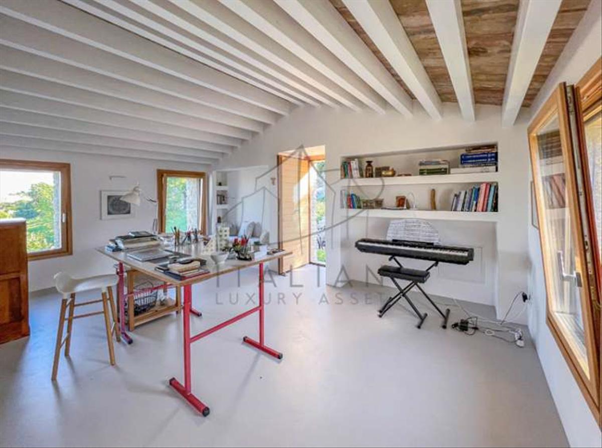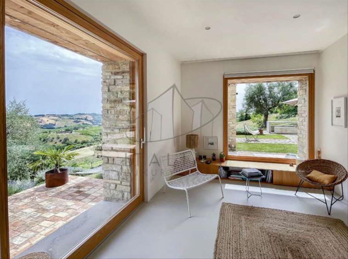 A kilátás a Colli Esini-re körülöleli az ingatlant, és korlátozások nélkül nyújt látványos panorámát.
