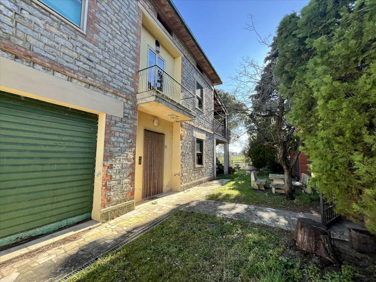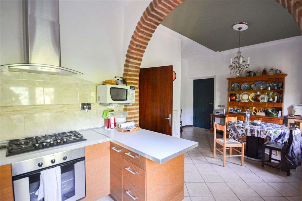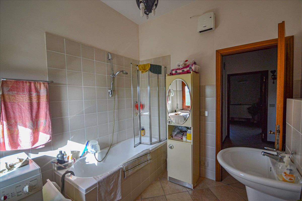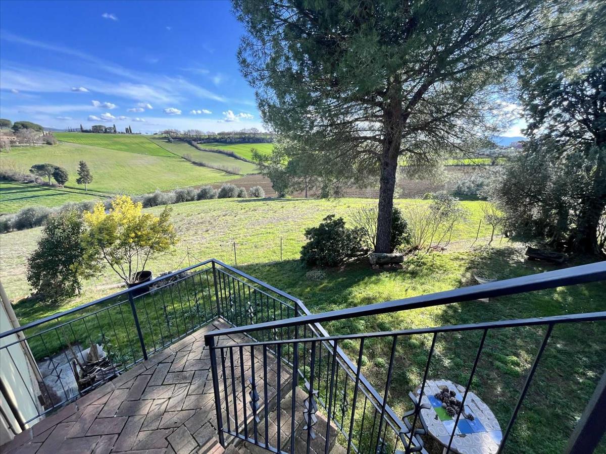 Egy szép, csendes vidéki helyen, a szolgáltatásoktól kis távolságra, az Umbria és Toszkána közötti határon egy 290 m²-es vidéki ház három szinten oszlik meg.Földszinten van a nagy bejárat és a lépcsőház.