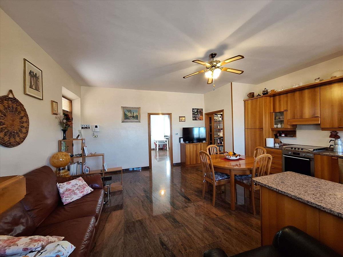 Eladó egy félig levált ház exkluzív udvarral Contrada Santa Lucia-nál, a Tolentino kapunál, panorámás helyzetben, zöldövezetben, a városközpont közvetlen közelében.Körülbelül 200 m²-t foglal a földszint és az első emelet közötti elosztás, és mintegy 200 m² áll az alagsorban a pincékhez, raktárakhoz és a kényelmes garázshoz.