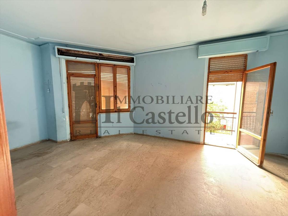 Ci276 - Eladó ház Montepulciano. Leírás: Az ingatlan körülbelül 400 m²-es, két ingatlanegységből áll. Földszinten tornác, két tároló és dupla garázs található. Az első emeleten nagyméretű bejárat, nappali erkéllyel, konyha és étkező erkéllyel, előszoba, szekrény, két hálószoba (mindkettő kétágyas) és fürdőszoba várja. Az ingatlan kerített kerttel rendelkezik.