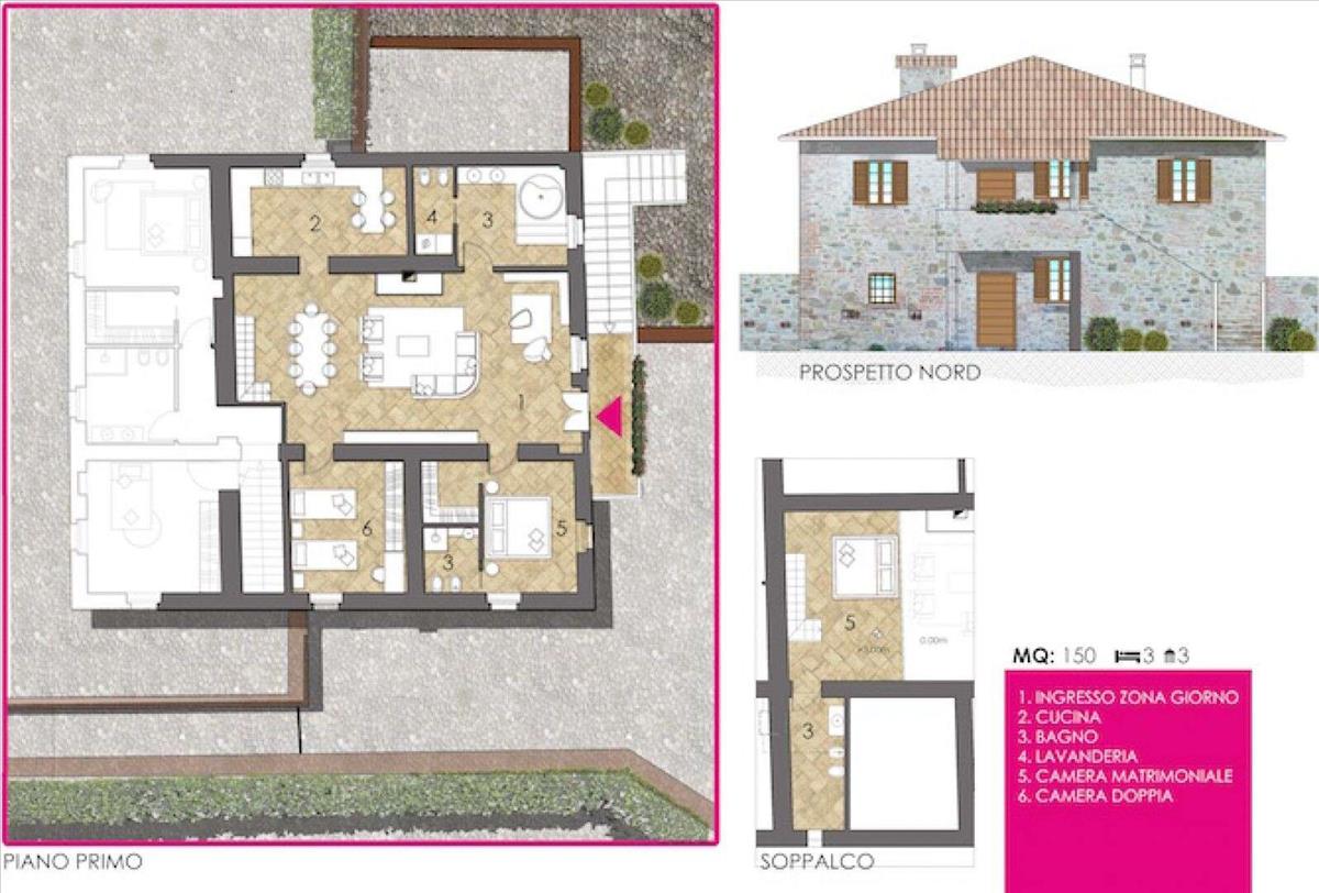 A harmadik egy jellegzetes Umbria-stílusú épület, amely körülbelül 200 m2-t tesz ki, és földszintből és az első emeletből áll; önállóan vagy egyetlen komplexumként használható. Külső lépcsőháza van, terasszal, és van lehetőség belső lépcső beépítésére a földszint és az első emelet között.