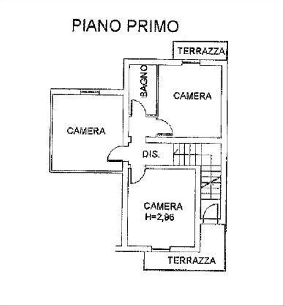 Az első emeleten belső lépcsőházon keresztül jutunk fel, ahol három hálószoba, előszoba, fürdőszoba és terasz található.