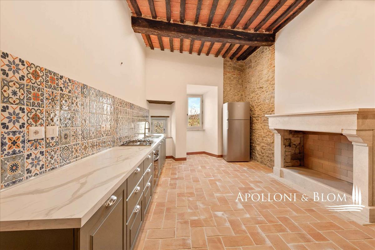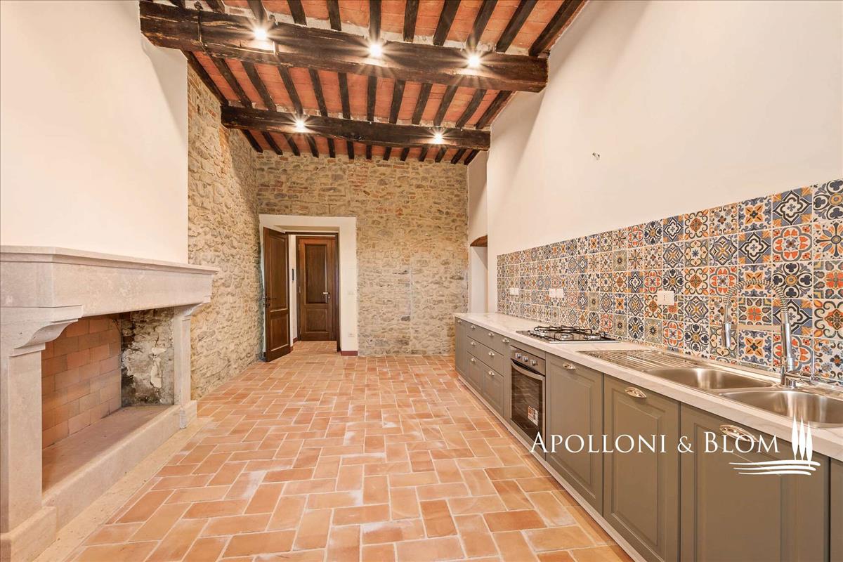 Piegaro középkori városának szívében egyedülálló lehetőség nyílik egy 335 négyzetméter (3605 négyzetméter) kiterjedésű történelmi városházára négy szinten. Főszerepben egy bejárattal és a tipikus rusztikus stílussal ötvözve, a történelemben és vonzerőben gazdag légkör vár rád.Minden szoba egyedi jellegű: kőfalak, kandalló, terrakotta padló, fa gerendás mennyezet. A földszinti bejárat egy rusztikus szobába nyílik, innen vezet a lépcső az első emeleti apartmanhoz. Az első emeleten a nappali már felújított, és a központi folyosóról nyílik egy étkező-konyha, egy nappali kandallóval, két kétágyas hálószoba, két fürdőszoba és egy mosókonyha. Kényelmi felszerelések közé tartozik a dupla üvegezésű ablakok, a központi fűtés radiátorokkal, az új fürdőszobai szerelvények és a szabadon álló zuhanyzók.
