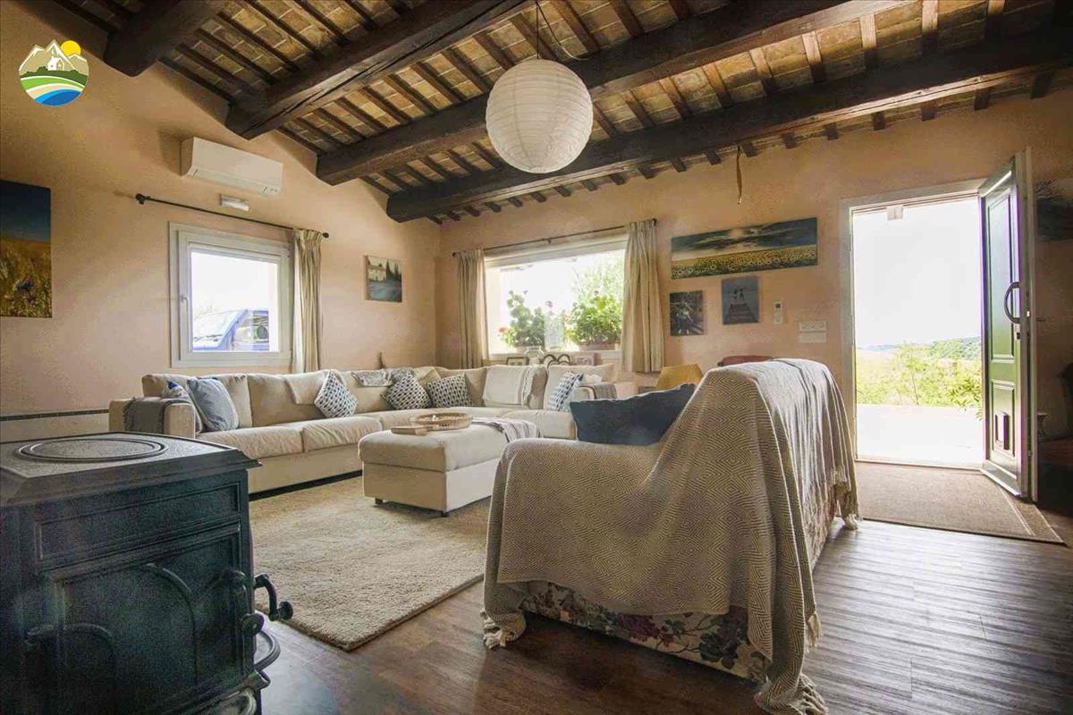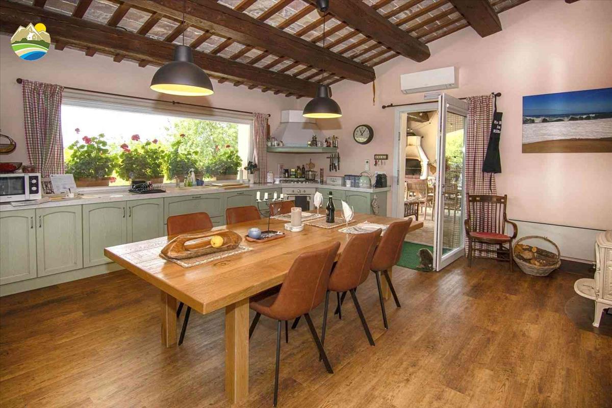 A Casale delle Colline a természet szívében, a művelt mezők és a gyengéd dombok ölelésében található ez az elbűvölő ház, amely exkluzív visszavonulást kínál azok számára, akik békét, szépséget és kényelmet keresnek egy kivételes vidéki környezetben. Elérhető a festői fehér útról kanyarodva az érintetlen tájak között. Az ingatlan egy ragyogó dombon helyezkedik el, domináns pozícióban, és úgy érzed, mintha az idő megállna.A házikó, amelyet nemrég építettek, egyetlen szinten terül el, és Te is a lehető legnagyobb kényelmet élvezheted, a modern építészeti megoldásokkal, amelyeket zökkenőmentesen illesztettek a környezetbe és a tájba. A belső tér nyitott koncepciójú, a tágas, világos nappali és a nyitott konyha ideálisak a Te társasági összejöveteleidre és a pihenésre, kifinomult, mégis informális hangulatban. Három hálószoba, mindegyikhez saját privát fürdőszoba tartozik, a magánélet és a kényelem érdekében. Nagy ablakok lélegzetelállító kilátást nyújtanak a környező zöldterületekre. Panorámás veranda és szolgálati WC teszi ideálissá a kültéri étkezéseket vagy a pihenést a meleg nyári estéken. Lenyűgöző kilátást kínál, egy exkluzív sarokban, ahol a természet szépsége körülvesz.