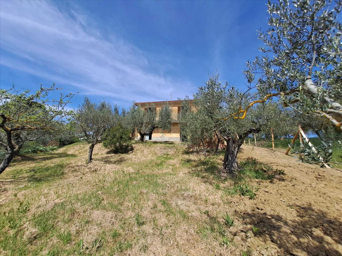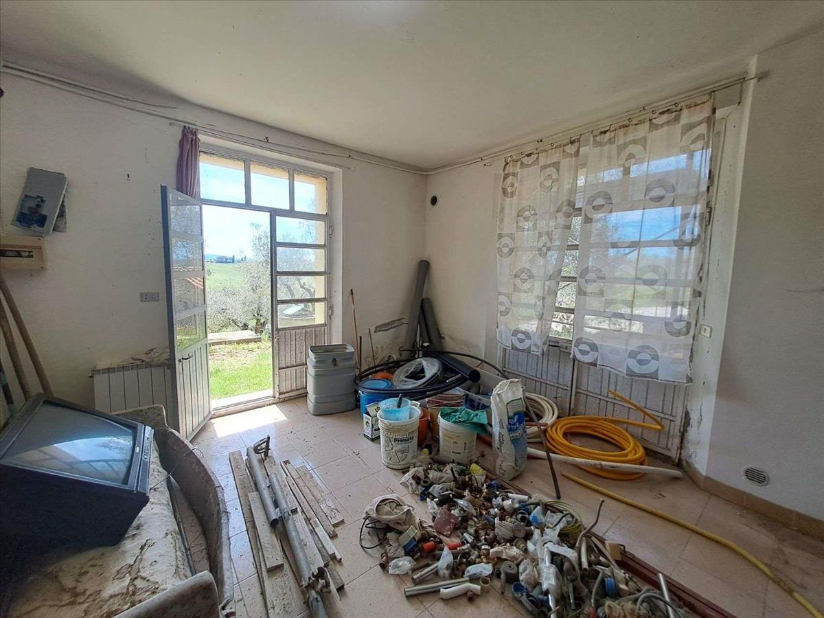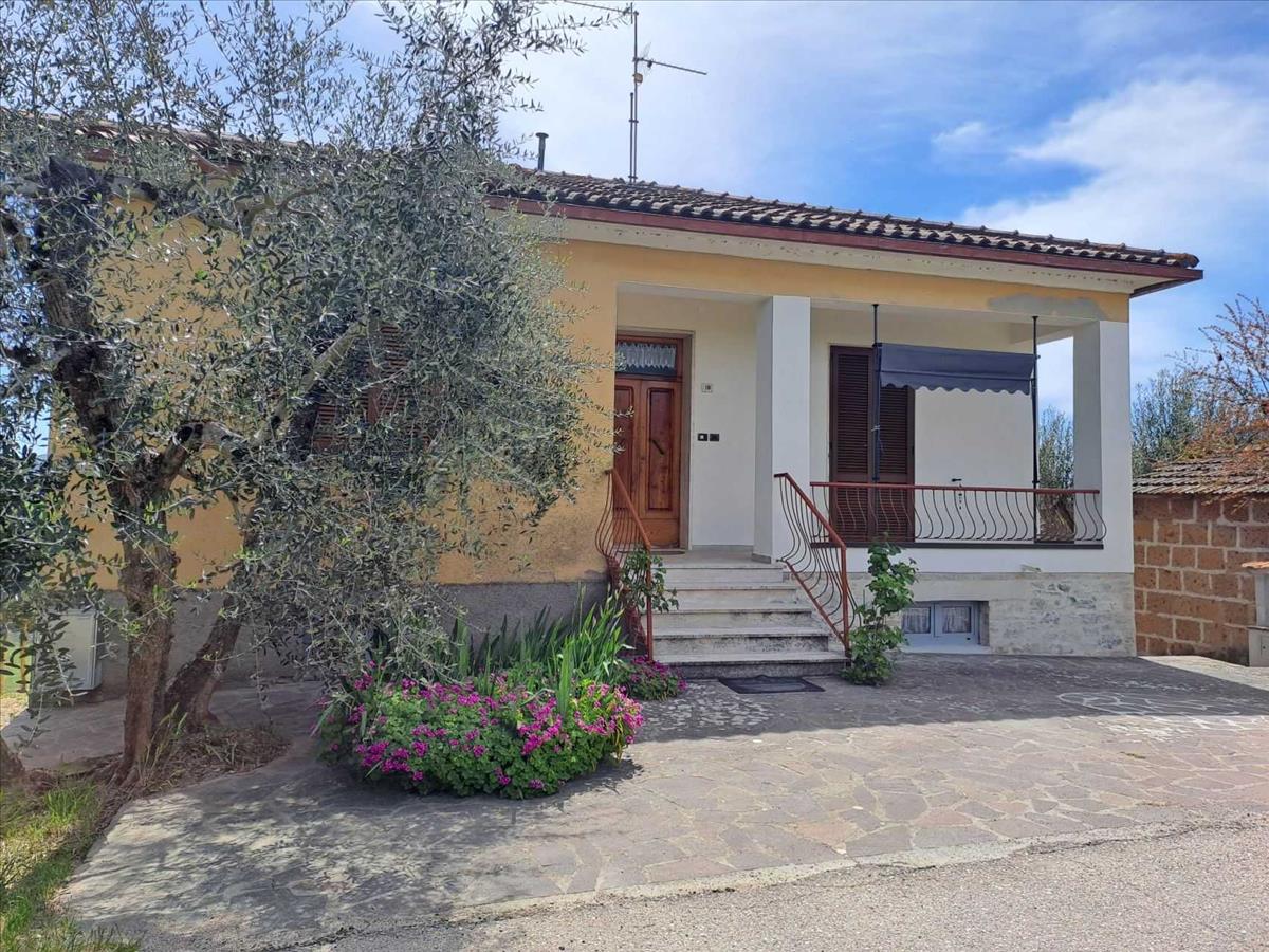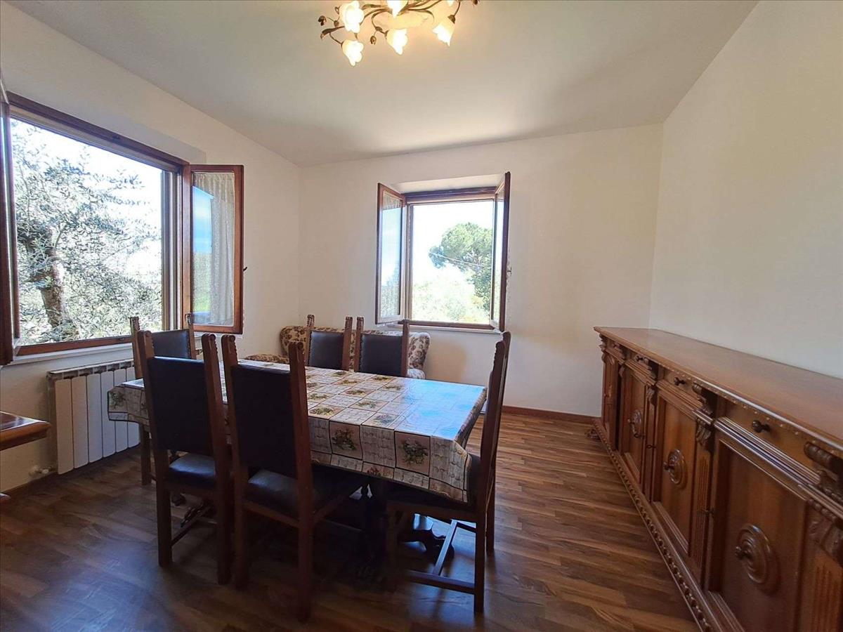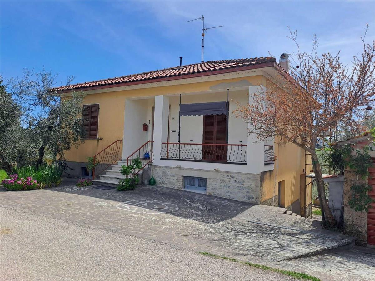 Egy csendes helyen, a Chiusi-tó és a Trasimeno-tó között, csodálatos kilátással az Umbria vidéke dombjaira, egy szép, különálló ház két szinten, a földszinten lakással és az alagsorban lévő raktárhelyiségekkel.