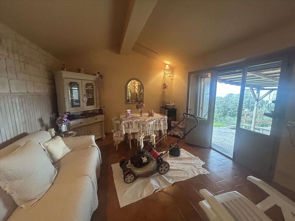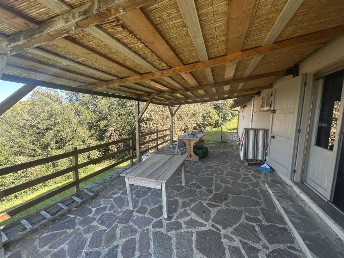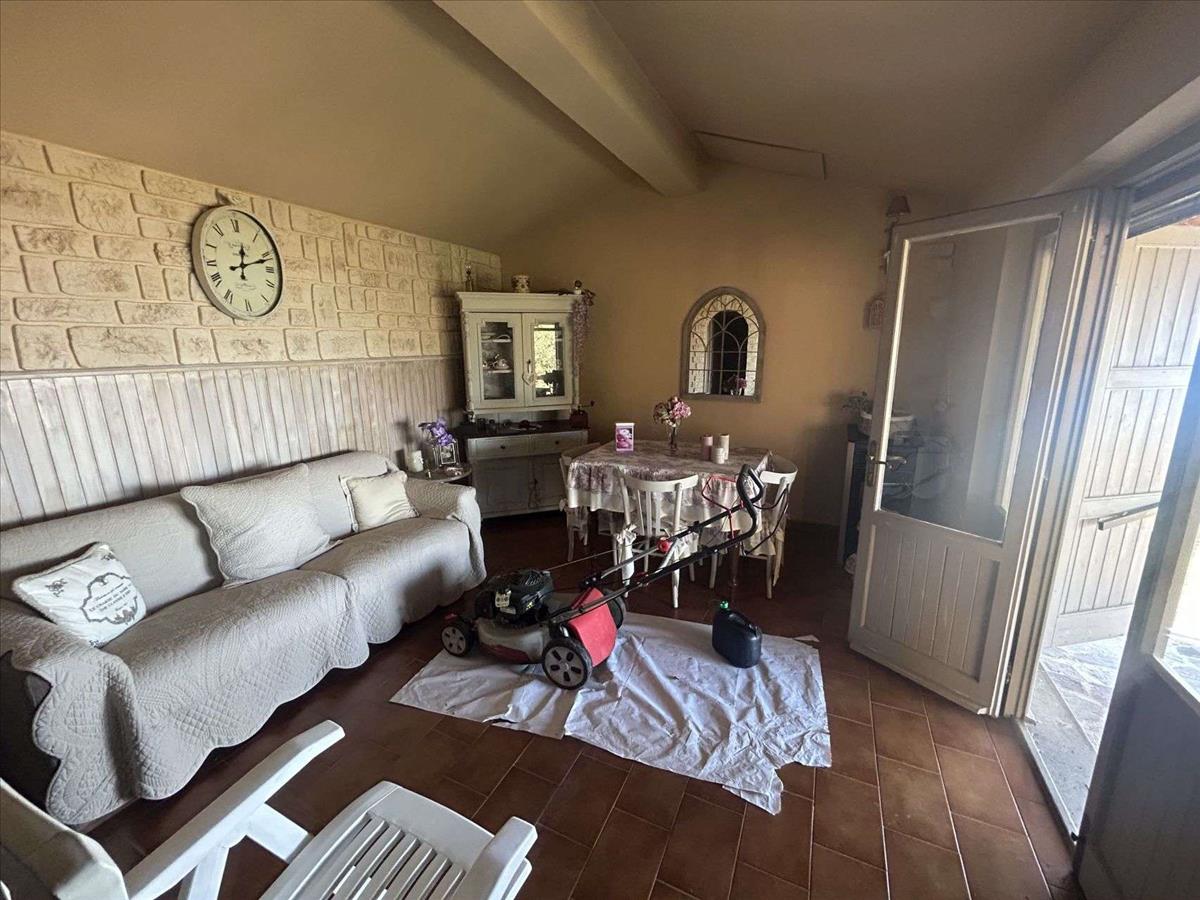 Kívül van egy veranda, amely ideális nyári ebédekhez és vacsorákhoz, és a telek 3 500 m² területű, körülbelül ötven olajfával, egy független kúttal, barbecue és téglából készült szerszámtárolóval.