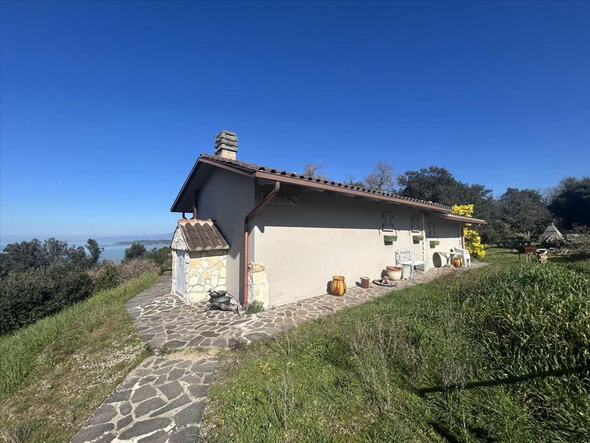 A Trasimeno-tó déli oldalán, dombos, domináns helyzetben találsz egy kis, egyemeletes villát, amelyből csodálatos, széles kilátás nyílik a tóra és a Polvese-szigetre.
