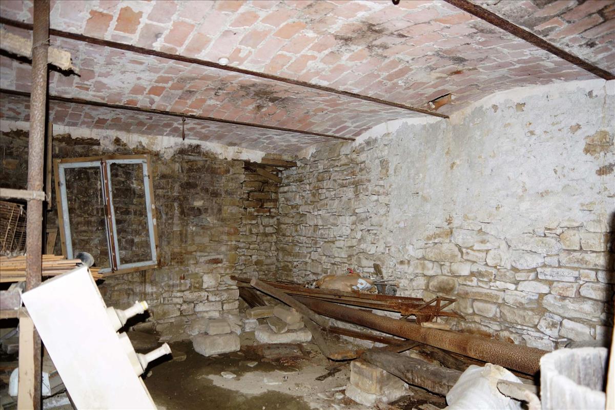 Van egy pince téglaboltokkal, és a fa gerendák az ablakok és ajtók felett eredetiek.