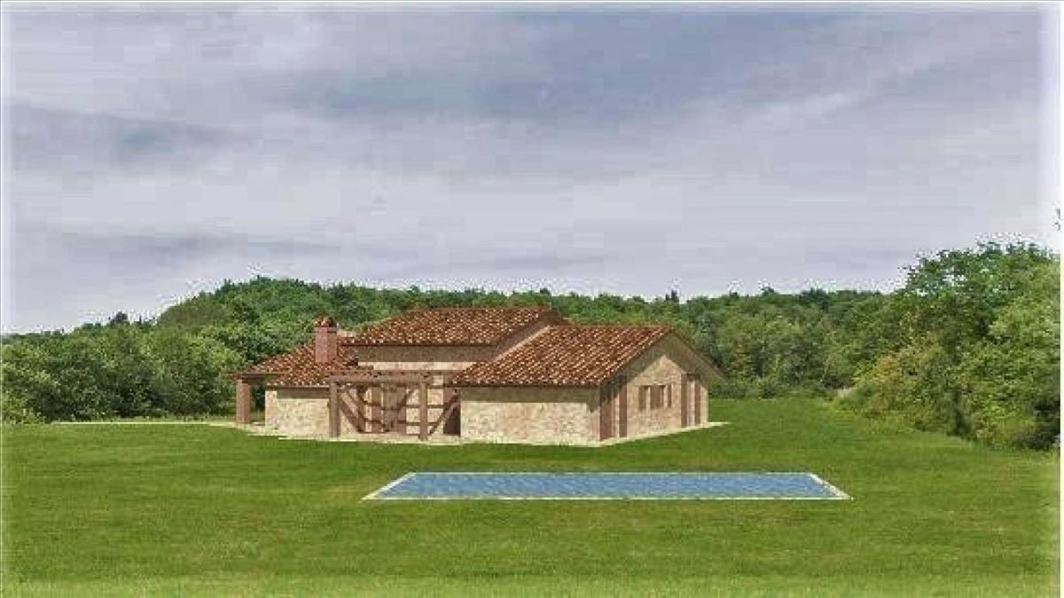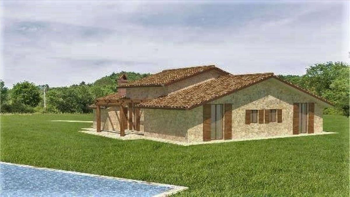 Parrano kastélyához közel, csendes, panorámás helyen találsz egy kb. 2470 m²-es telket, amelyhez egy jóváhagyott projekt tartozik parasztház építésére.
