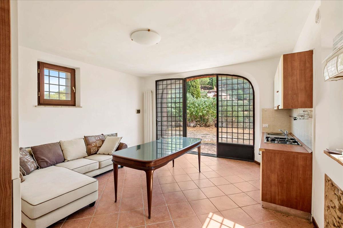 Ez egy tipikus vidéki kőfarm, négy rusztikus stílusú, 1 hálószobás egységgel, eladó Città della Pieve közelében, Perugia megyében. Vidéken a Trasimeno-tó és Città della Pieve között található egy régi farmból álló umbriai komplexum része.Egy tipikus kővidéki házat kétszintesre építettek az 1800-as évek elején. A homlokzat kőbe vésett téglabetétekkel, íves nyílásokkal, jellegzetes csempékkel és téglatetővel készült. A földszint megőrzi a fa gerenda mennyezetét.