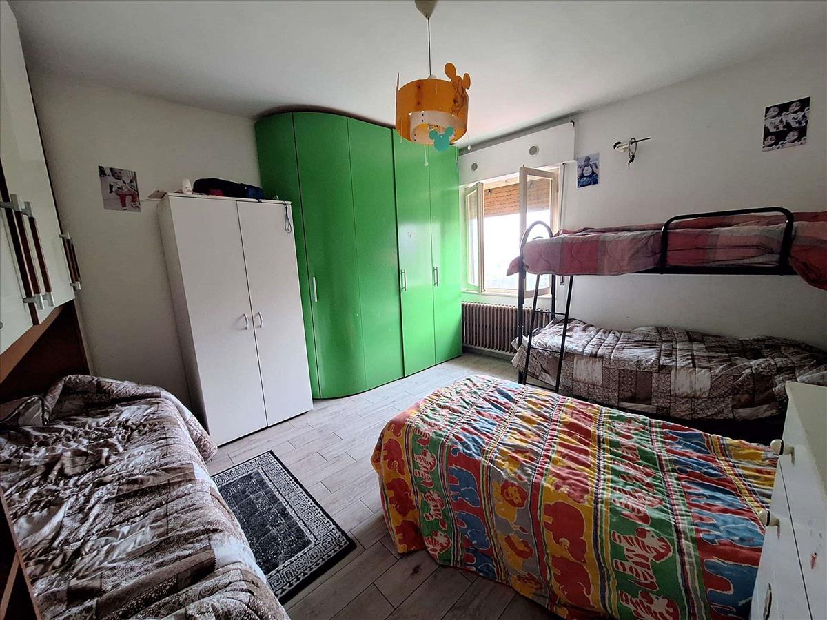 San Severino Marche, Marche, Olaszországban kényelmes helyen, az úttól és a legközelebbi szolgáltatásoktól csak néhány percre találod ezt az ingatlant három oldalról független bejárattal. Az ingatlan az első emeleten és a második emeleten helyezkedik el, 90 m² belső területtel.Az első emeleten nappali és konyha van, plusz WC-vel és mosdóval. A második emeleten folyosó és két kétágyas hálószoba található, amelyek közvetlen hozzáférést biztosítanak az erkélyhez és a fürdőszobához.