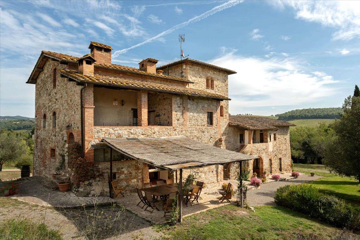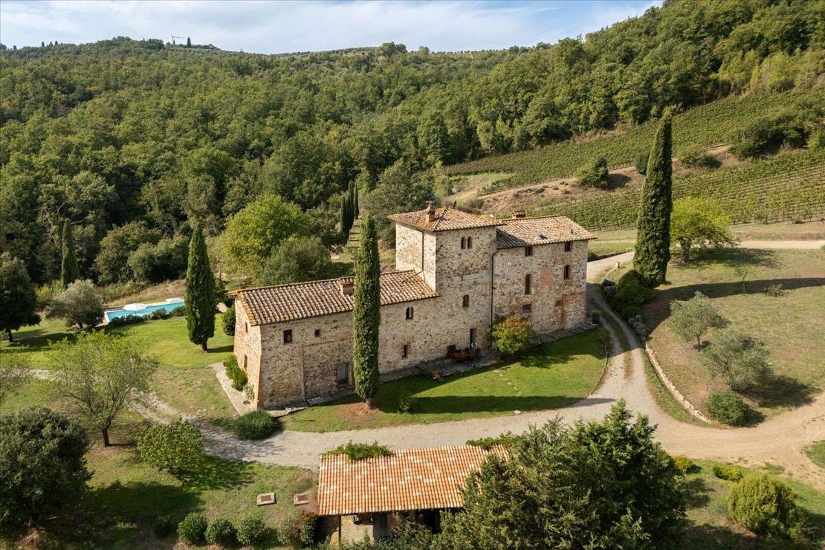 A Chianti Classico tájában, Gaiole in Chianti és Siena között, eladó egy 14. századi toronyból átalakított ingatlan. A torony a 17. században parasztházzá alakult, ma pedig finoman felújított vidéki villa vendégházzá és medencével szolgál. Az ingatlanban felújított légkondicionáló, napelemek és medence is megtalálható. A telket övező 26 hektáros mezőgazdasági területet 5 hektár szerves szőlőültetvények alkotják, az olajfaültvény 150 fát számlál, és a területen szántóföld és magánerdő található.A homlokzatokon ősi kő, tornácok és loggiák harmonikusan ötvöződnek, így karakteres és történelmi lakóhely jött létre. A földszinten több lakrész kényelmesen kapcsolódik a téglaívekhez, két konyha közvetlen hozzáférést biztosít a pergolához és a kerthez. További helyiségek között található egy iroda és egy mosoda.