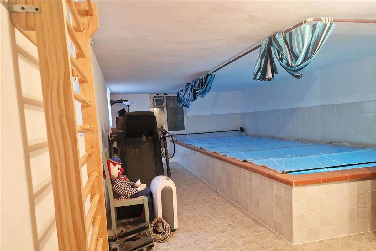 Külön hozzáférés vezet egy wellness részleghez, tornateremmel, szaunával és 6x3 m-es fűtött medencével, valamint fürdőszobával, mosodával, pincével és további tárolóhelyekkel.