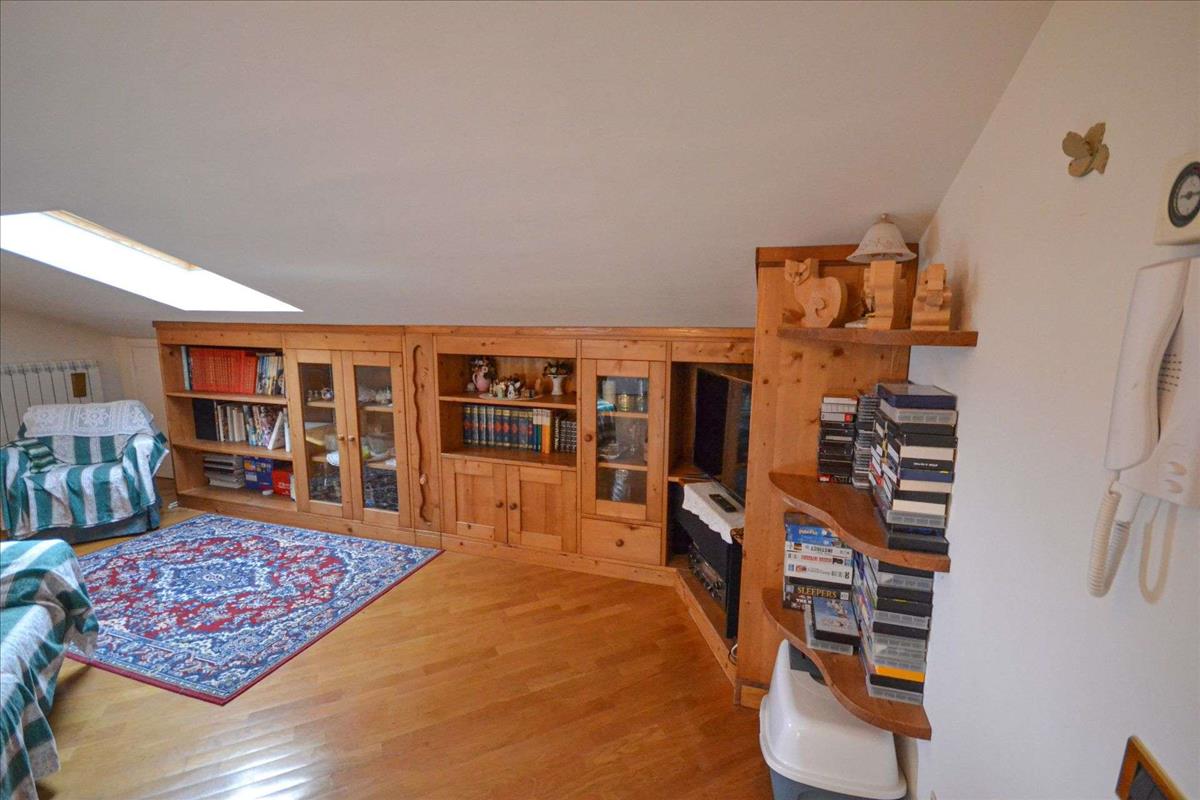 Az első emeleten egy nemrég felújított tetőtér van, amelyet nappaliba alakítottak ki kandallóval és konyhával, és amelyben kétágyas hálószoba, fürdőszoba és padlás található.