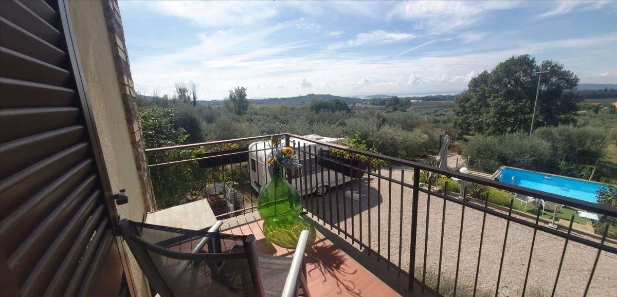 Egy dombos fekvésű helyen található, könnyen megközelíthető, körülötte kert és 60 fából álló olajfaliget, exkluzív kilátás a Trasimeno-tóra és az Umbria dombjaira.