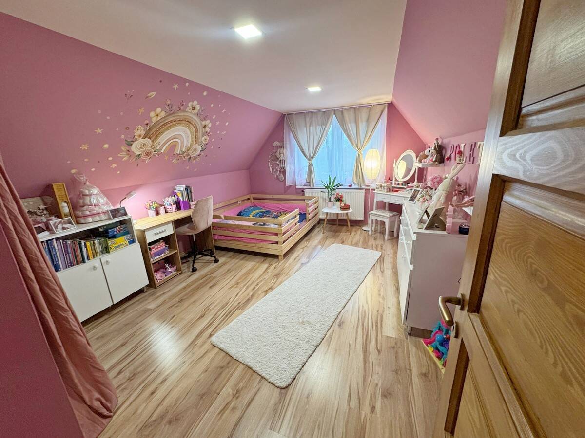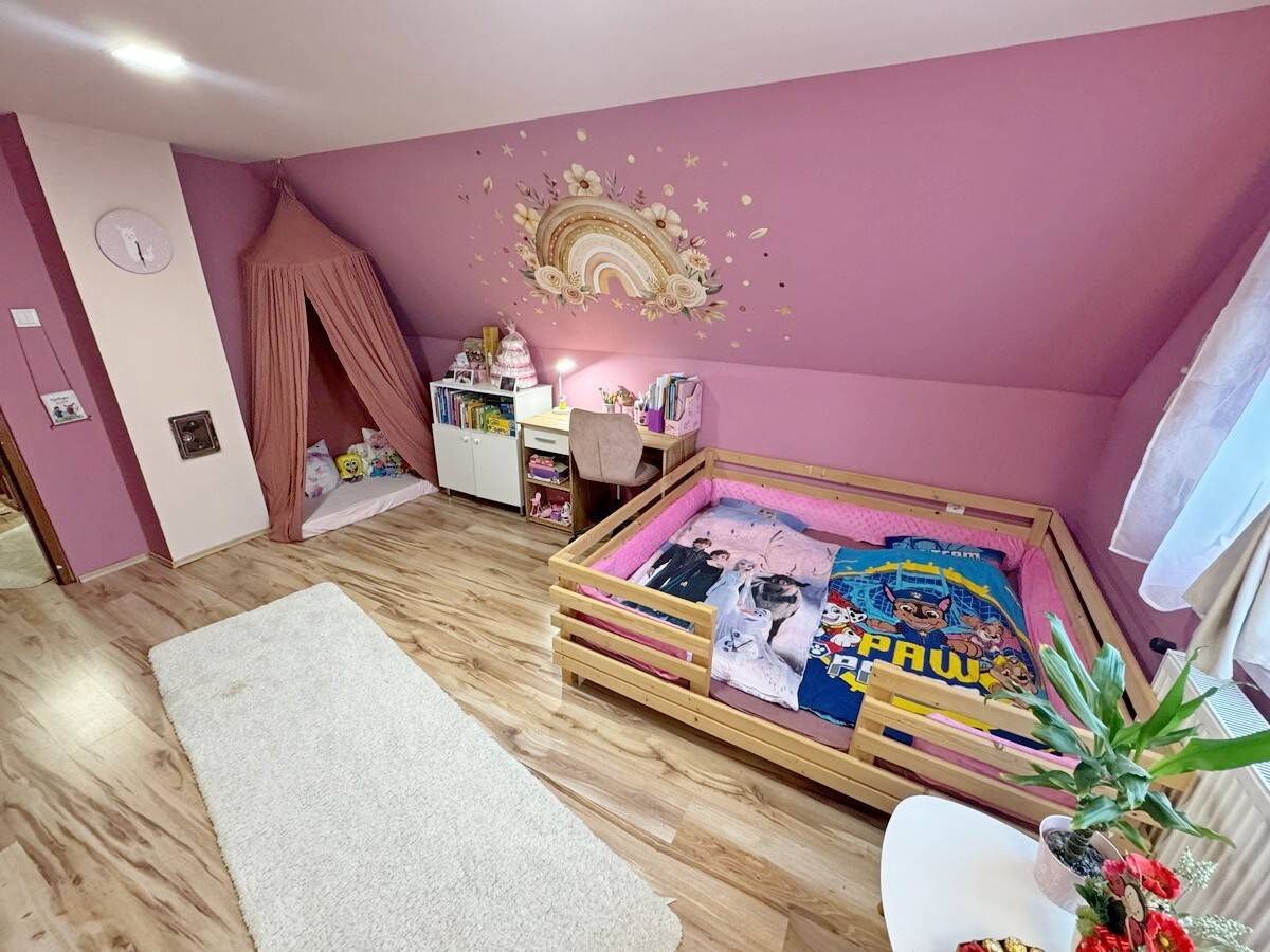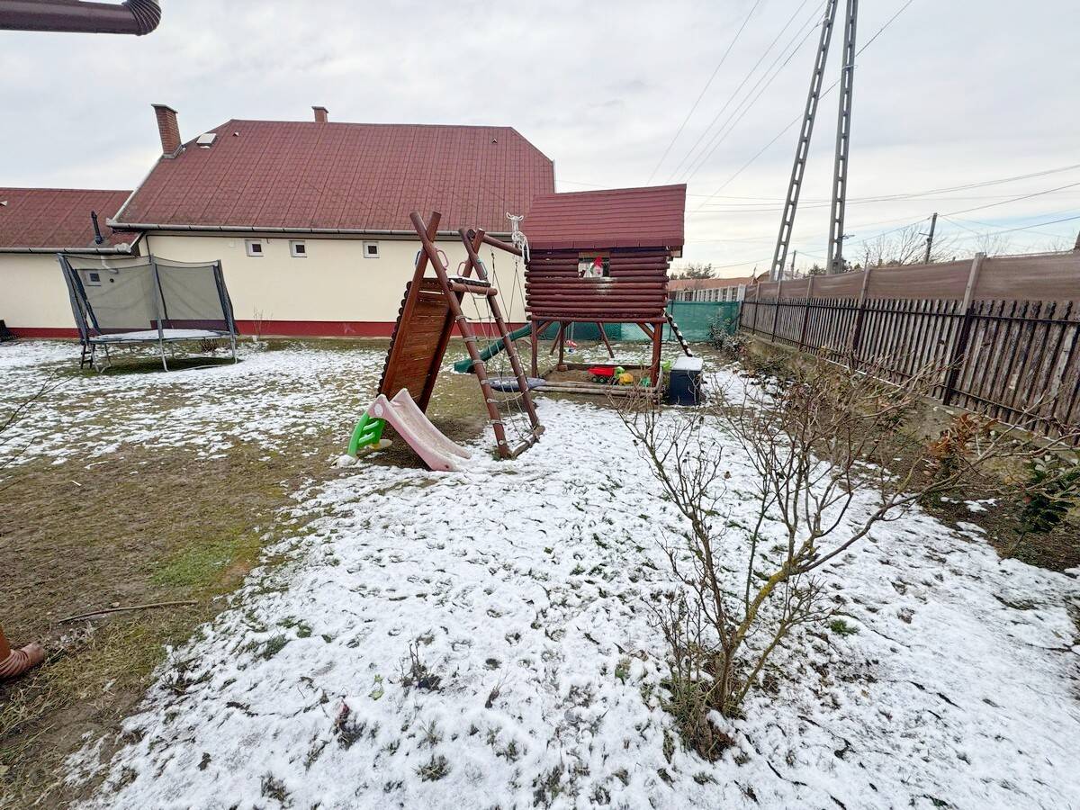 Nagyméretű, 857 m2-es saroktelken kialakított pihenőkerttel, játszótérrel.