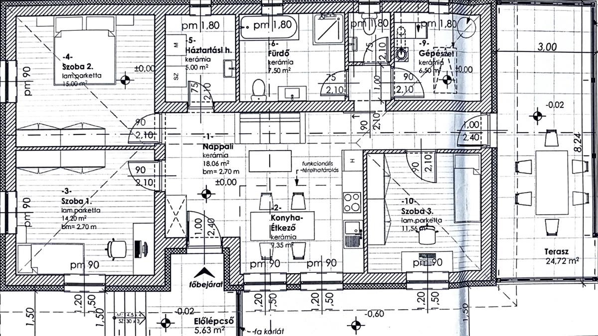 A családi ház hasznos alapterülete: 90, 05 m² (Bruttó 118, 69 m²)