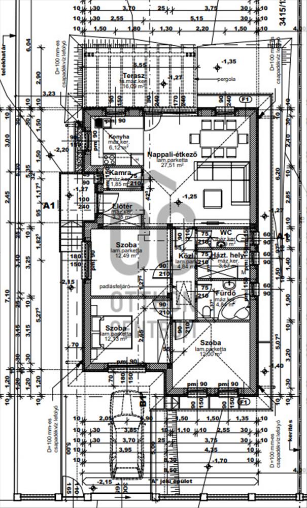 Az ingatlan alapterülete 91 négyzetméter, amely tökéletesen megtervezett TEREKből áll, így minden családtag számára elegendő helyet biztosít.