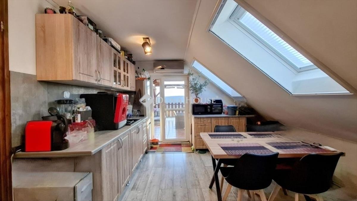 A tetőtér beépített, fa födémes kialakítással. Minőségi, 3 rétegű Velux tetőtéri ablakok kerültek beépítésre hővédő rolóval. a komfortot 3 darab energiatakarékos (a++) klíma biztosítja.