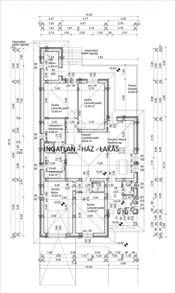 - Hőszivattyús (11kW) fűtés rendszer, padlófűtéssel