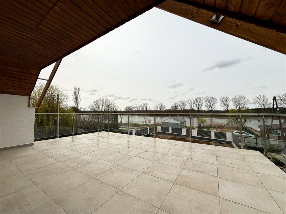 Az emelet igazi koronája a tágas terasz, amelyről lélegzetelállító panoráma nyílik a közeli tóra és a környező zöld területekre. Az üveg-rozsdamentes acél korlát szabad kilátást biztosít, a természetes fa mennyezet meleg hangulatot teremt, a nagy formátumú járólap pedig az igényes kivitelezés természetes folytatása. Ez a terasz nem csupán kiegészítő - ez a ház egyik legértékesebb tere, ahol reggeli kávétól az esti napnyugtáig élmény kint lenni. a padlástér osb burkolattal ellátott, tárolásra alkalmas.