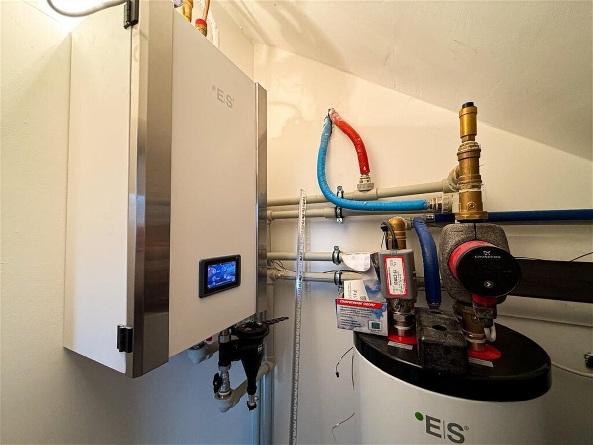 Fűtés: eis márkájú hőszivattyús rendszer két puffertartállyal, Grundfos keringetőszivattyúval - gázmentes, környezetbarát üzemeltetés