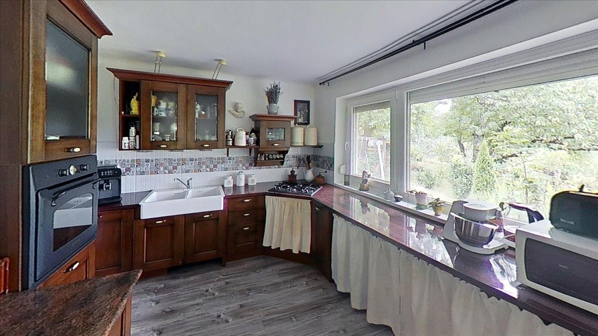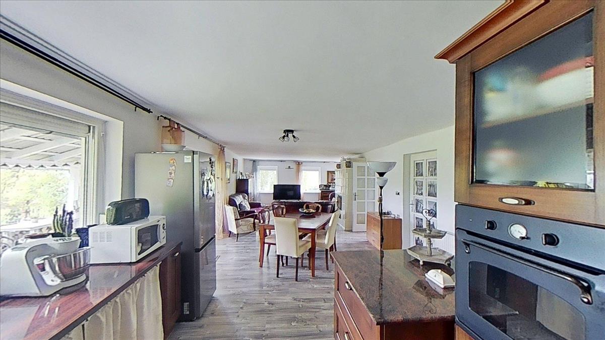 Bános Orfű azon része, ahol talán a legjobb lakni. Csodás panoráma, tiszta levegő, csönd, szomszédok alig… De a tópart autóval 2 perc, sétával, bicajjal persze kicsit több. Így viszont télen-nyáron lehet élvezni a csöndet, mert sosem hallatszik fel a strand és a nyaralók zaja.Itt, Bánoson található ez a 2016-ban teljeskörűen felújított ház, egy 1200 nm-es sík telken. Igény esetén a telek akár 4200nm-re is bővíthető. a kétszintes ház földszintjén nagy nappali, konyha, háló- és egy ebből nyíló fürdőszoba, egy külön wc és előszoba osztozik. a konyha bár egy légtér a nappalival, mégis jól elszeparált a nappali életterétől. a nappalinak van egy kisebb, hangulatos része, amit akár le is lehet választani egy gardróbnak, gyermekszobának, stb. , Bár kár lenne érte, mert jelenleg nagyon jó olvasó/dolgozósarokként működik.