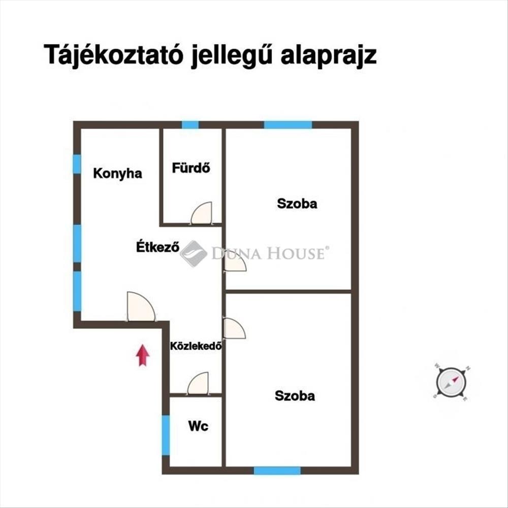Belső tere jól kihasználható: 2 szoba, konyha-étkező, zuhanyzós fürdő, külön wc, közlekedő.