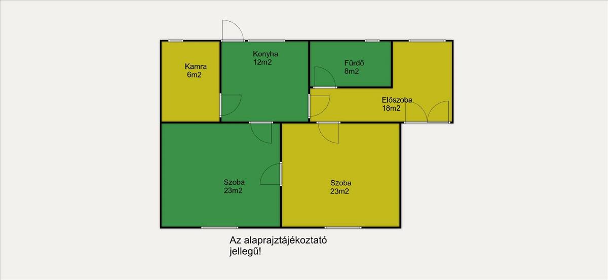 A ház elrendezése praktikus: 2 külön nyíló szoba, ideális kisebb család vagy párok számára. a belső ajtók még az eredetiek, így igény szerint korszerűsíthetők.