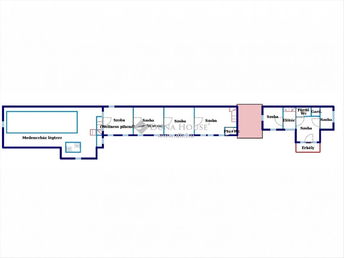 A déli fekvésű ingatlan a belváros közelében, csendes, zöldövezeti részen helyezkedik el. Az épületben minden igényt kielégítő wellness részleg került kialakításra, ahol egy 5x20 méteres beltéri automatizált medence, valamint egy 10 személyes jakuzzi, infraszauna és egy 8 személyes finn szauna található.