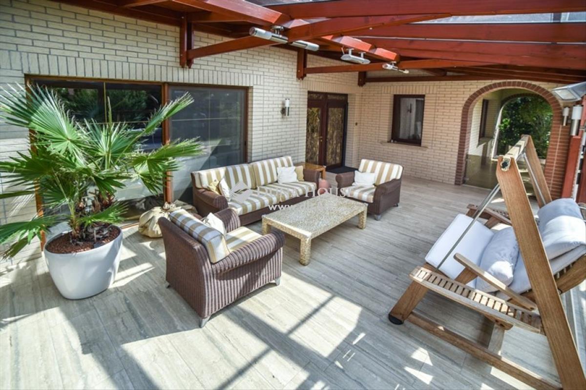 A kertkapcsolatot 2 nagyméretű fedett terasz biztosítja, mindkét terasz automatizált árnyékolóval van ellátva. a wellness funkciók (medence takaró, medence funkciók, páratartalom, hőmérséklet, ajtónyitás - zárás, és még számtalan funkció) és a teljes ház fűtése, levegőztetése, mind automatikusan, akár távvezérléssel is működtethetők.