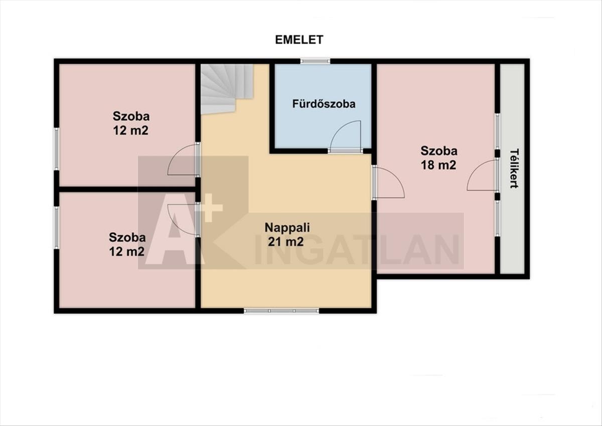 A felső szintre lépéskor szintén egy nappali tárul elénk, melyből nyílnak a praktikusan külön bejáratú hálószobák és egy fenti fürdőszoba.