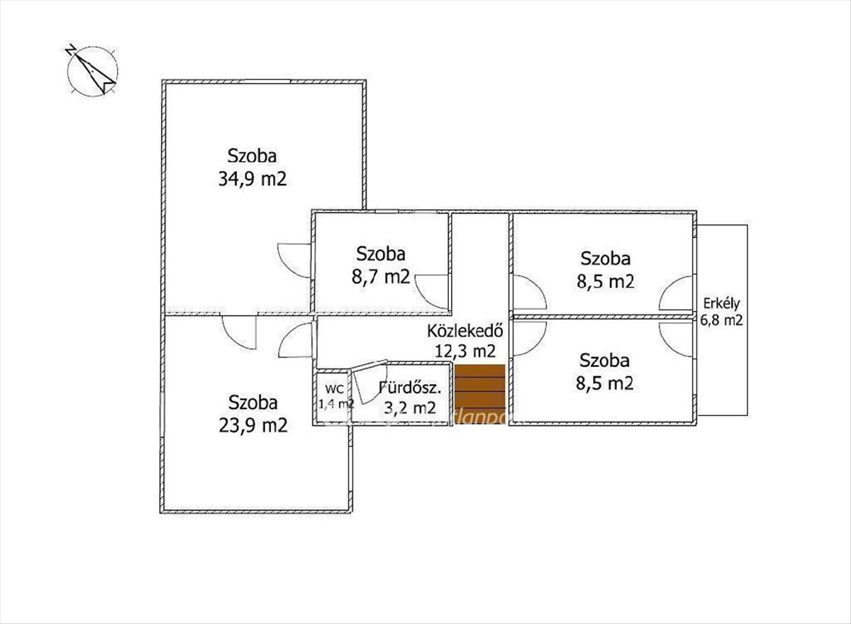 Az épület 2 emeletes, 2 bejárati ajtóval rendelkezik, mindkét irányból a földszinti közlekedőbe jutunk. a földszint része egy tágas, napfényes, 3 ablakkal rendelkező nappali, vele szemben pedig a szintén tágas konyha, így étkezőként is funkcionál, továbbá innen nyílik egy tárolásra tökéletesen alkalmas kamra. a földszinten megtalálható még egy wc helyiség. Az emeletre felérve közlekedő vezet a különböző helyiségekbe. Az egyik oldalon 2 egyforma méretű (8, 5 - 8, 5 m2) hálószoba került kialakításra, melyek tükörképei egymásnak, az erkélyre mindkét szobából kiléphetünk. a fürdőszoba és mellette a külön nyíló wc praktikus megoldása az emeleti résznek. Itt még nincs vége, ugyanis további 3 helyiség indíthatja meg a leendő tulajdonos fantáziáját, melyek körbejárhatók: 2 szoba nyílik (23, 9 és 8, 7 m2) még a közlekedőből, mindkét helyiséget ajtó köti össze az emelet legnagyobb terével, mely 34, 9 m2. Ügyes megoldásokkal akár két generáció számára kialakítható élettérben is gondolkodhat, illetve az iroda területe is átalakítható külön lakrészként.