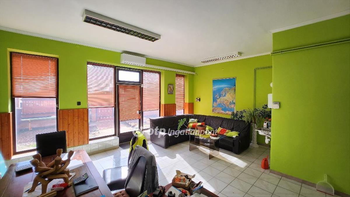 2 bejárattal rendelkezik, a házból nem átjárható, 5 helyiségből áll (tekintse meg az alaprajzot). Az irodarészként használt területet egy boltív választja el, a 34, 8 m2-es helyiségbe az utca felől nyílik ajtó, szemben vele pedig a műhelyből léphetünk be az előtérbe a másik ajtón keresztül. Rendelkezik egy wc helyiséggel, mely elég nagy ahhoz, hogy fürdőszobaként kerüljön hasznosításra. Az itteni tárolóban pihen a 2 db gázkazán: az iroda és a ház területétnek fűtéséről külön-külön gondoskodnak. Az irodarész rendkívül tágas, funkcióját tökéletesen ellátja, ügyfelek fogadására, iratok tárolására vagy akár bemutatóterem kialakítására alkalmas.