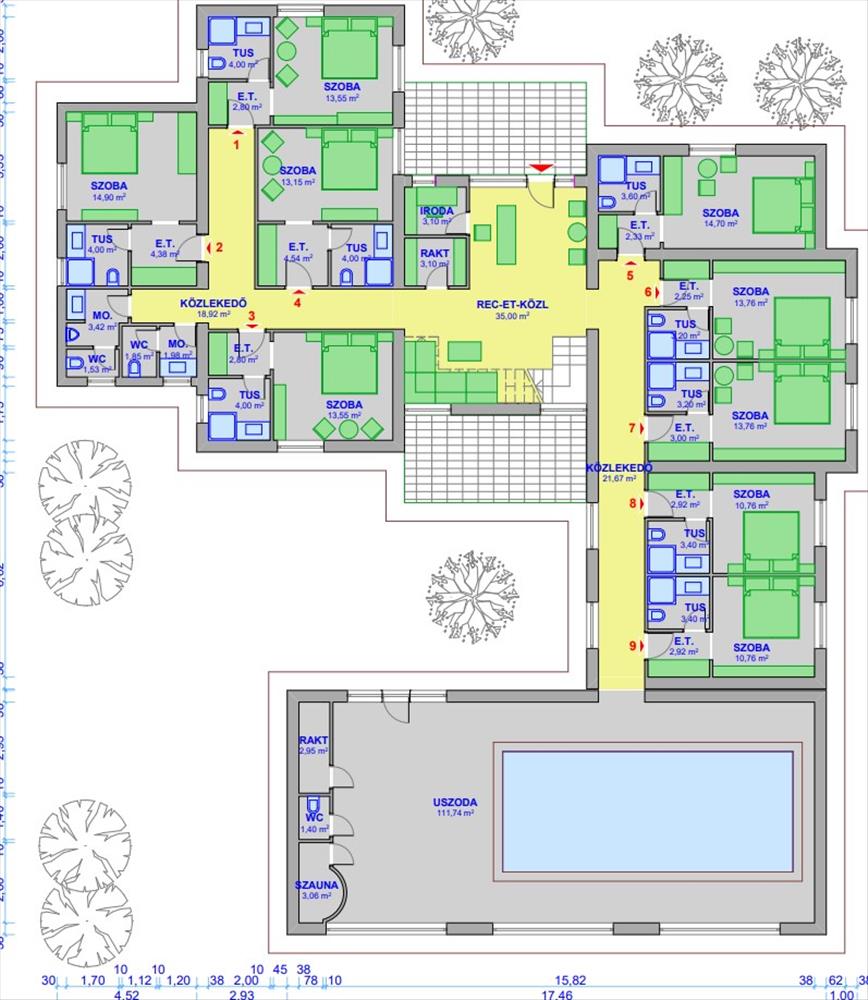 Az ott található 960 négyzetméteres épület 1999-ben épült, luxus kivitelben.