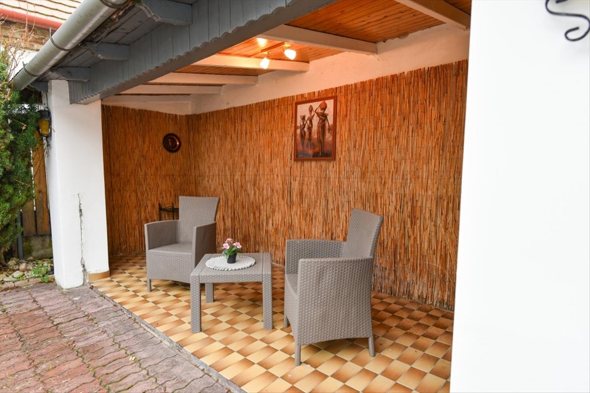 A K-i fekvésű, belterületi kőből és téglából épült ingatlan a település központjában, a Balatontól légvonalban 800 méterre helyezkedik el. a kis telken helyet kapott egy 6x3 méteres garázs is, amely tárolóként, átalakítva apartmanként is jól használható.