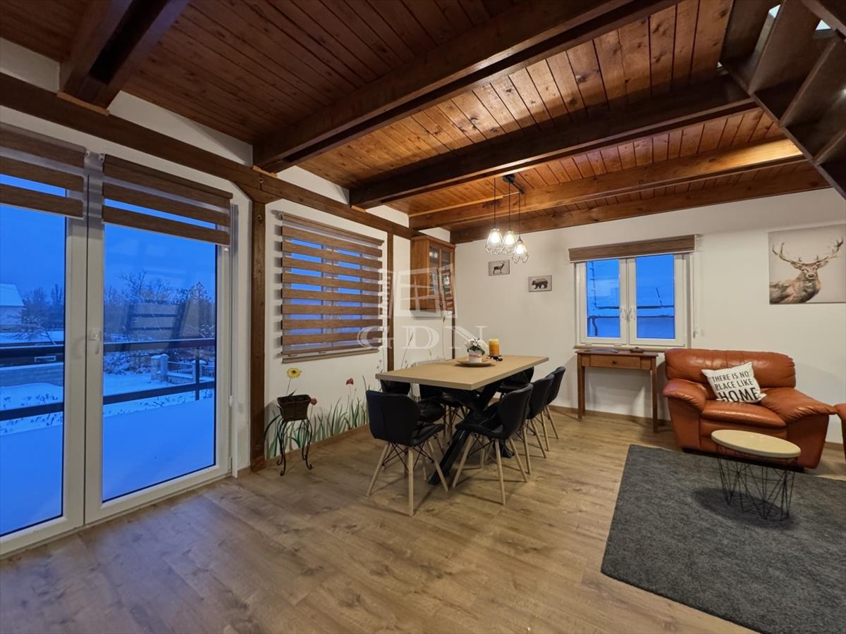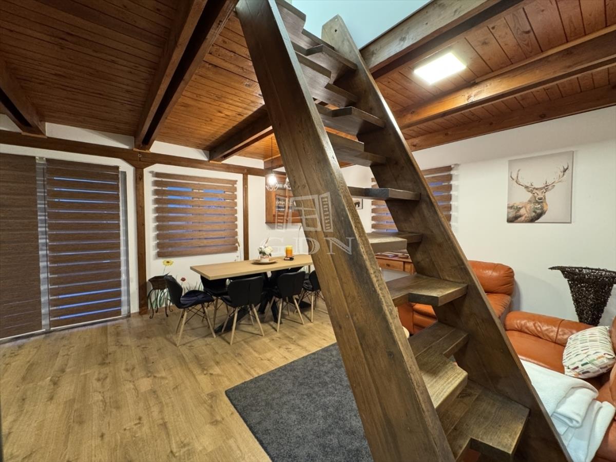 A földszinten amerikai konyha, fürdőszoba és wc található. a tetőtér beépített, két szoba került kialakításra.