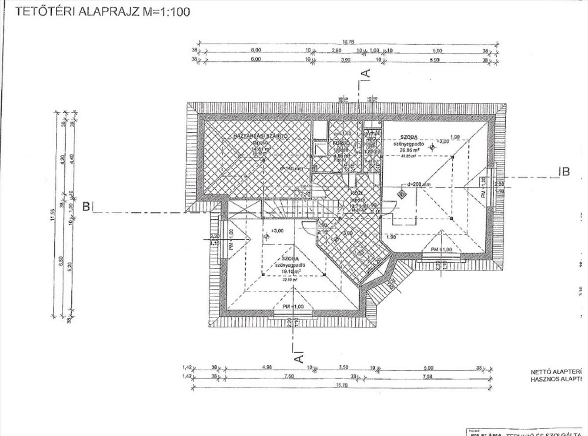 - Tetőtér 130m2: közlekedő, 3 hálószoba+ fürdőszoba (zuhanyzóval és káddal)
