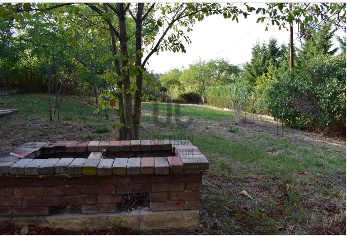 A telek 948 nm , gondozott, fűvel borított és néhány fa is található rajta, és csak minimálisan lejtős, pedig hegyen vagyunk. Az utca szintben fut, könnyen lehet így parkolni a telek előtt, vagy az udvarba beállva a kialakított fedett beállón. Aszfaltozott burkolatú úton lehet megközelíteni az ingatlant.