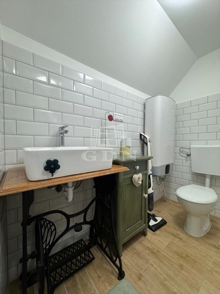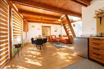 A földszinten amerikai konyha, fürdőszoba és wc található. a tetőtér beépített, két szoba került kialakításra.