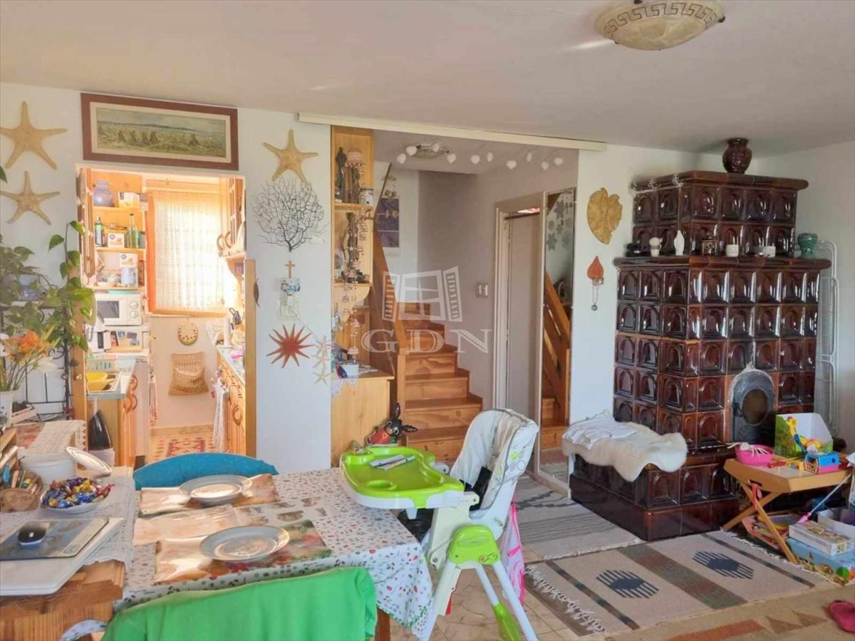 4811. Pákozdon, Velencei-tóra örökpanorámás, déli fekvésű, 80-as években épült tégla szerkezetű, háromszintes, nappali + 2 hálószobás, cserépkályha, illetve H-tarifás klímával fűthető, 10 cm-es külső hőszigeteléssel rendelkező családi ház eladó.