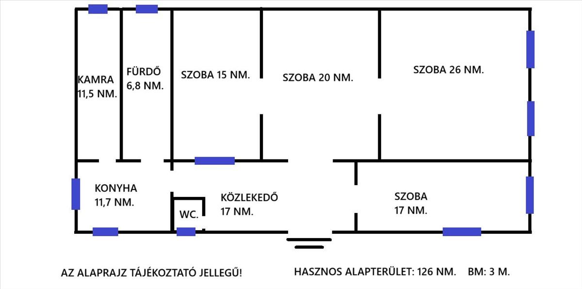 A nettó 126 m²-es ingatlan jelenlegi elrendezése: