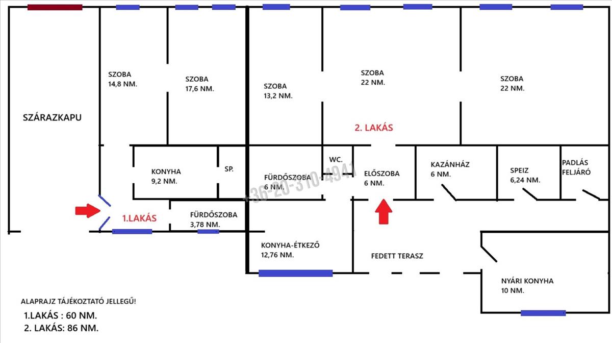 •földszintes épület, tágas udvarral – akár több autó parkolása is megoldható,
