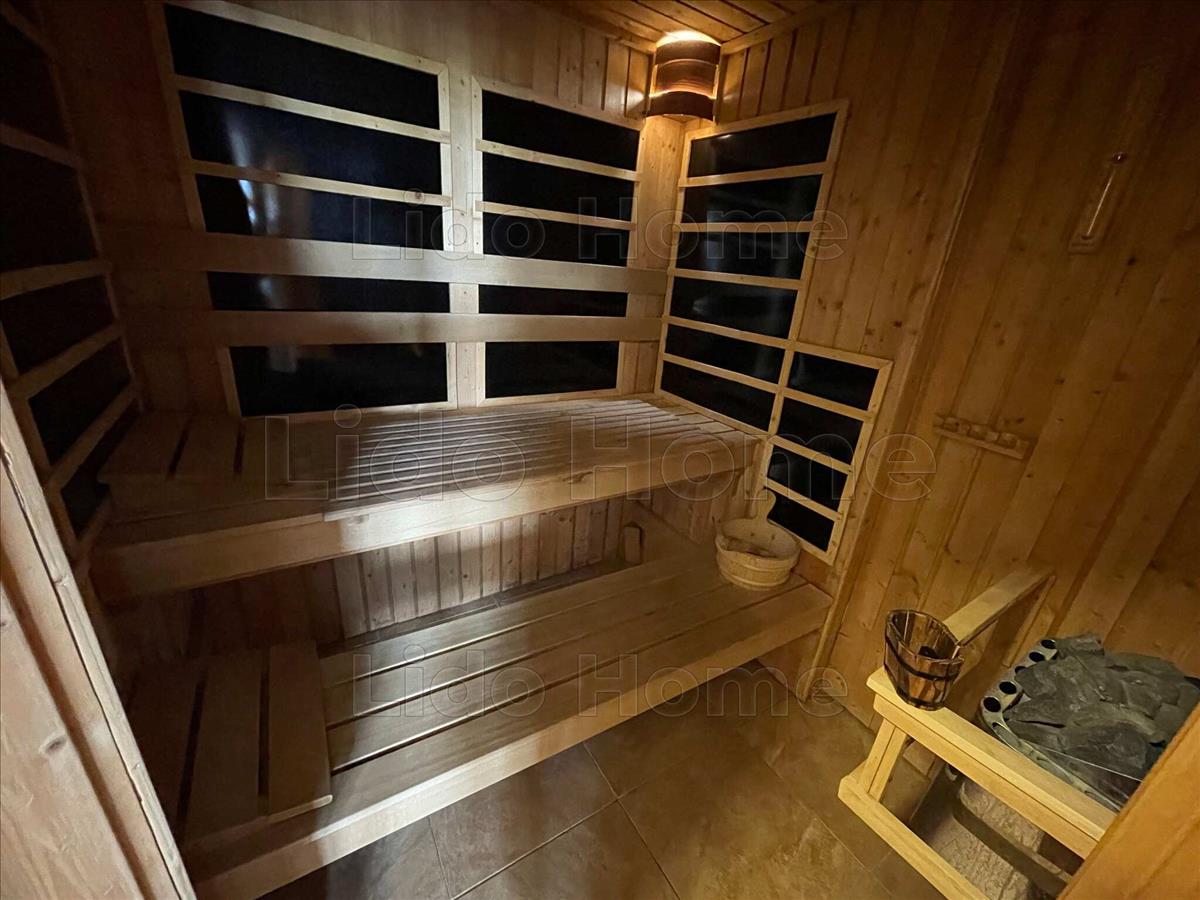 Az alsó szinten garázs, egy önálló lakrész saját fürdővel és finn szaunával, konyha-étkező, kazánhelyiség, valamint egy igényesen kialakított borospince található.