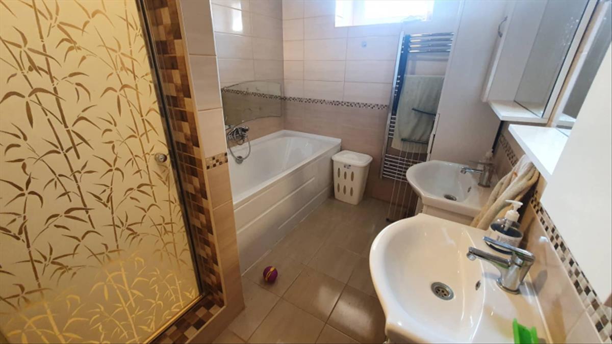 Hatalmas, világos nappali, modern, gépesített amerikai konyhával, fürdőszoba, spájz, garázs elektromos kapuval és vendég wc található.